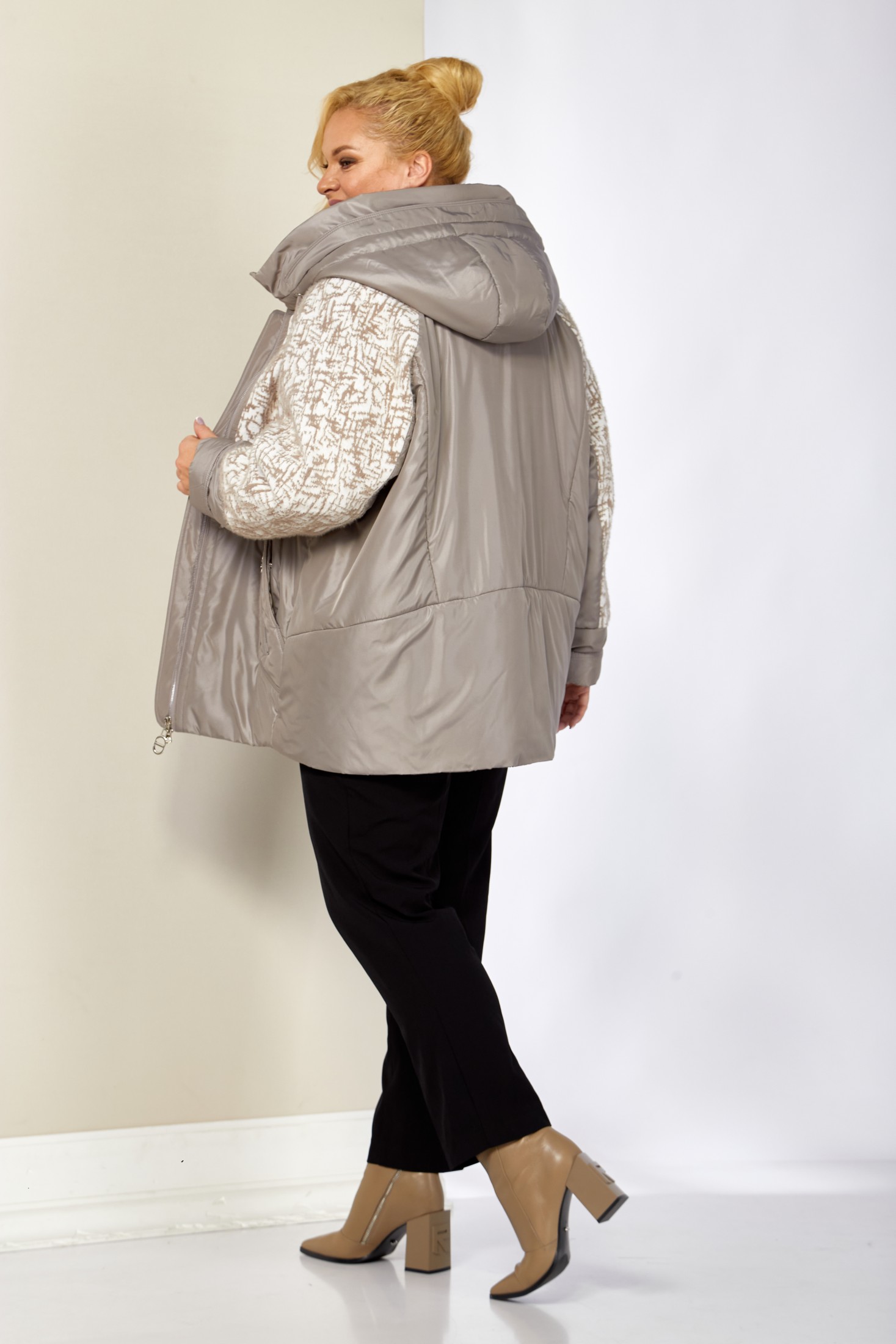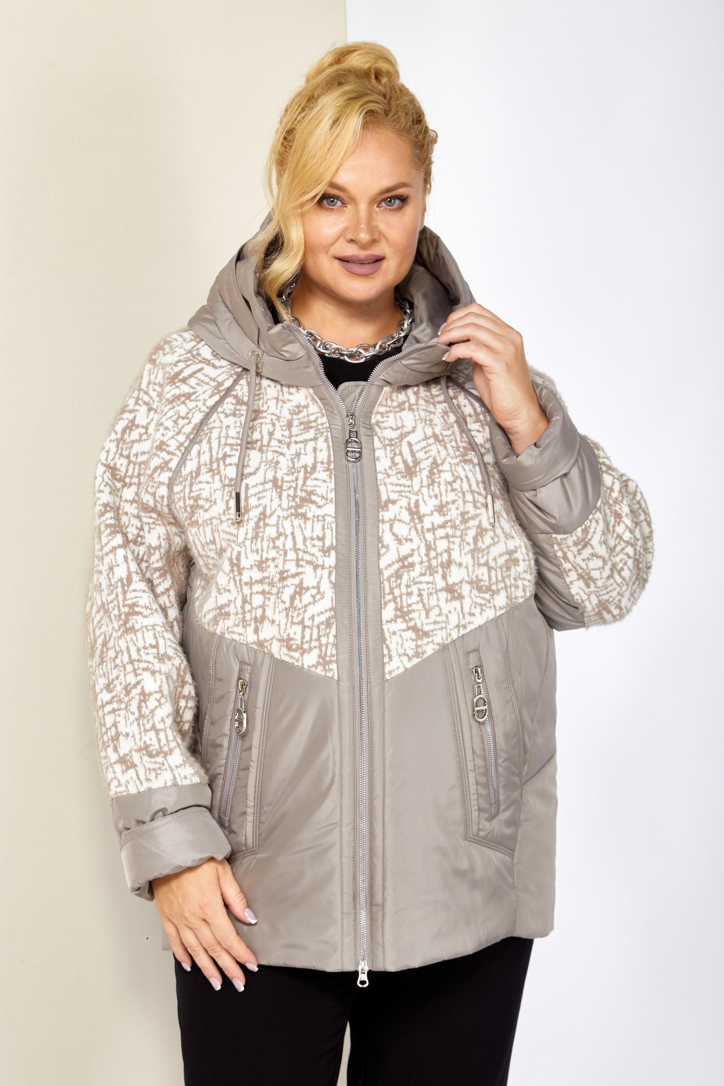 Женская демисезонная куртка сезона осень-весна, прямого силуэта, с воротником-стойкой переходящим в капюшон. Куртка повседневная удобная в носке, лёгкая в уходе и теплая. Застежка центральная на молнии (двухбегунковая). Изделие выполнено из курточной ткани высокого качества, на тонком мягком синтепоне. На подкладке. Передняя часть куртки с прорезными карманами на внутренних магнитах и карманами обманкой на молнии с декоративной подвеской. Рукав реглан. Капюшон не съемный, регулируется декоративным шнуром. Фигурная передняя кокетка и рукава выполнены с отделочной ткани из плотного мягкого трикотажа. С внутренней стороны куртки имеется внутренний карман. Спинка с рельефными швами и нижней отрезной кокеткой. Комфортный прямой крой, с идеальной посадкой на любую фигуру, выгодно подчеркнет любой силуэт и создаст неповторимый образ.Толщина синтепона 150г/м2, изделие предназначено для периода с температурой воздуха до -5.