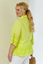 Воротник пиджачного типа, застежка центральная на петли и пуговицы. Рукав втачной до локтя. Спинка цельная. По рукавам и низу изделия вставки из кружева (шитье).