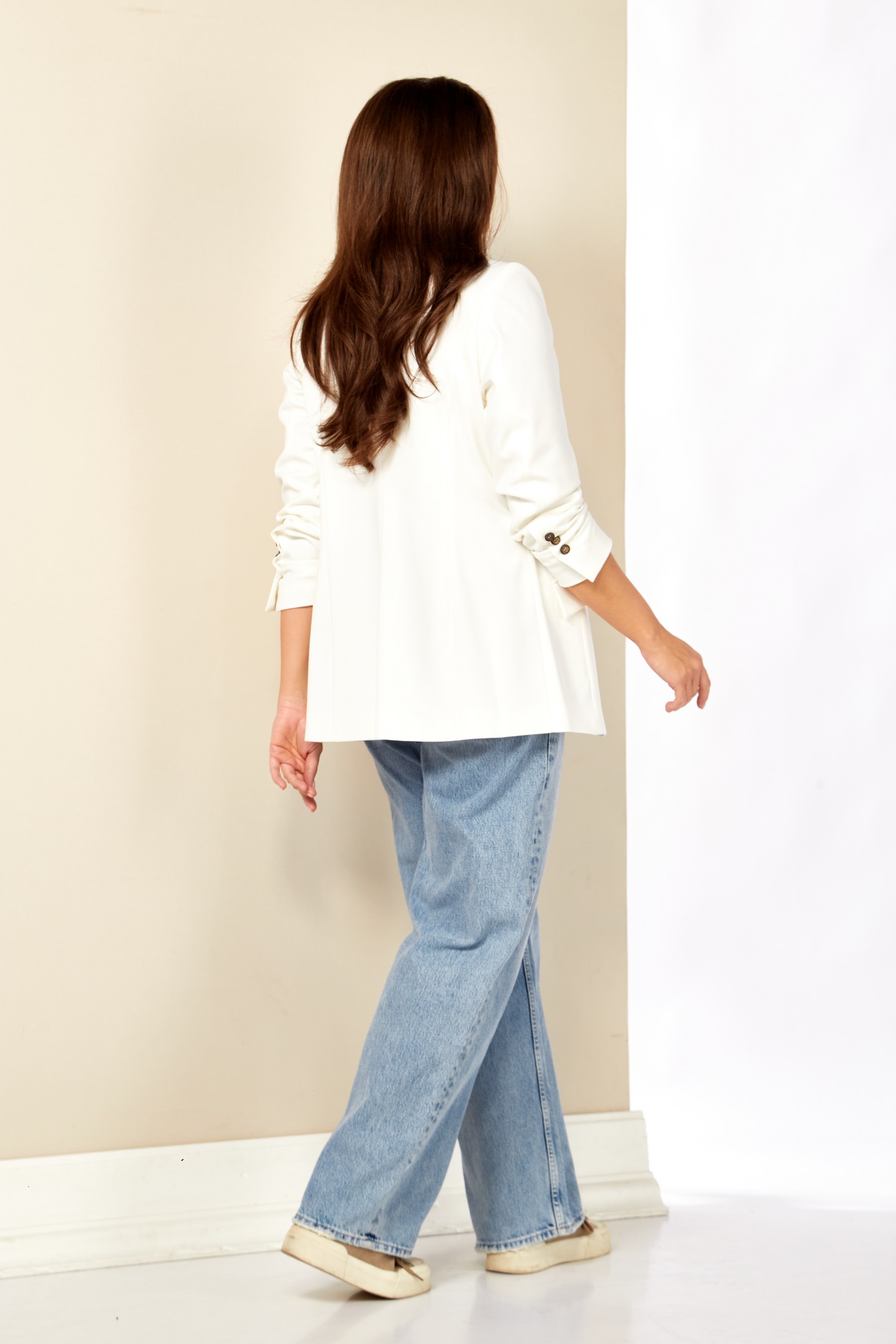 Этот жакет отлично сочетается с различными вариантами одежды, он отлично смотрится с брюками и джинсами, прямыми юбками или длинными платьями.