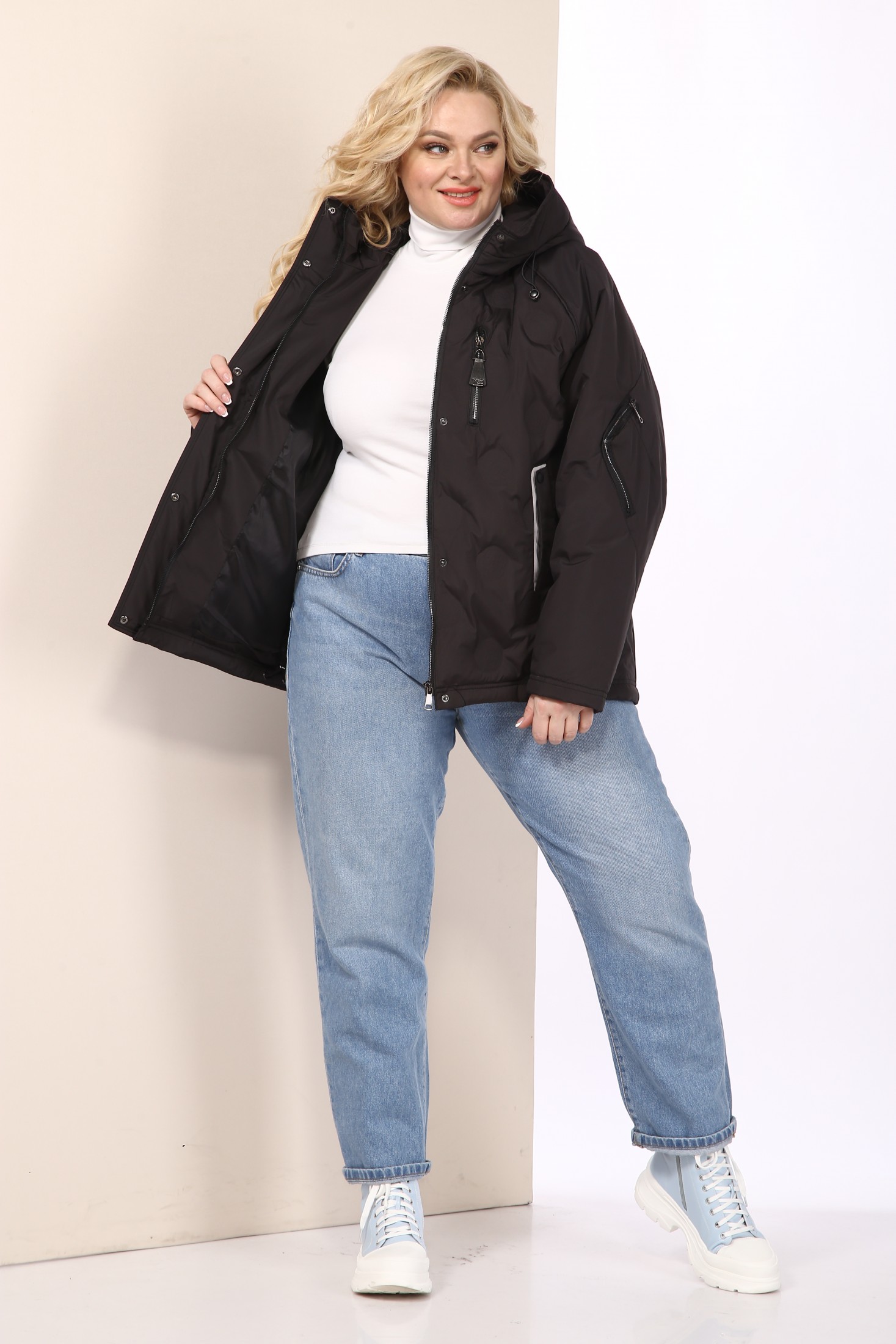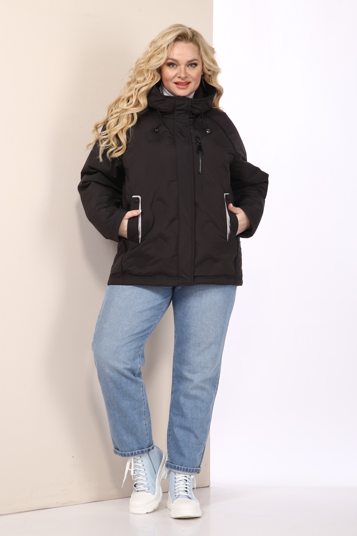 Женская демисезонная куртка сезона весна осень, легкий оверсайз, с воротником-стойкой переходящим в капюшон. Куртка повседневная удобная в носке, лёгкая в уходе и теплая. Застежка центральная на молнии с планкой на кнопки. Изделие выполнено из курточной ткани высокого качества, утеплитель ХБ пух. На подкладке. По переду куртки действующие карманами на кнопках. Рукав реглан. На полочке и рукаве карман-обманка. Капюшон не съемный, регулируется декоративным шнуром. Спинка цельная. Низ изделия на регулируемой кулисе. По бокам окантовочная отделка.
