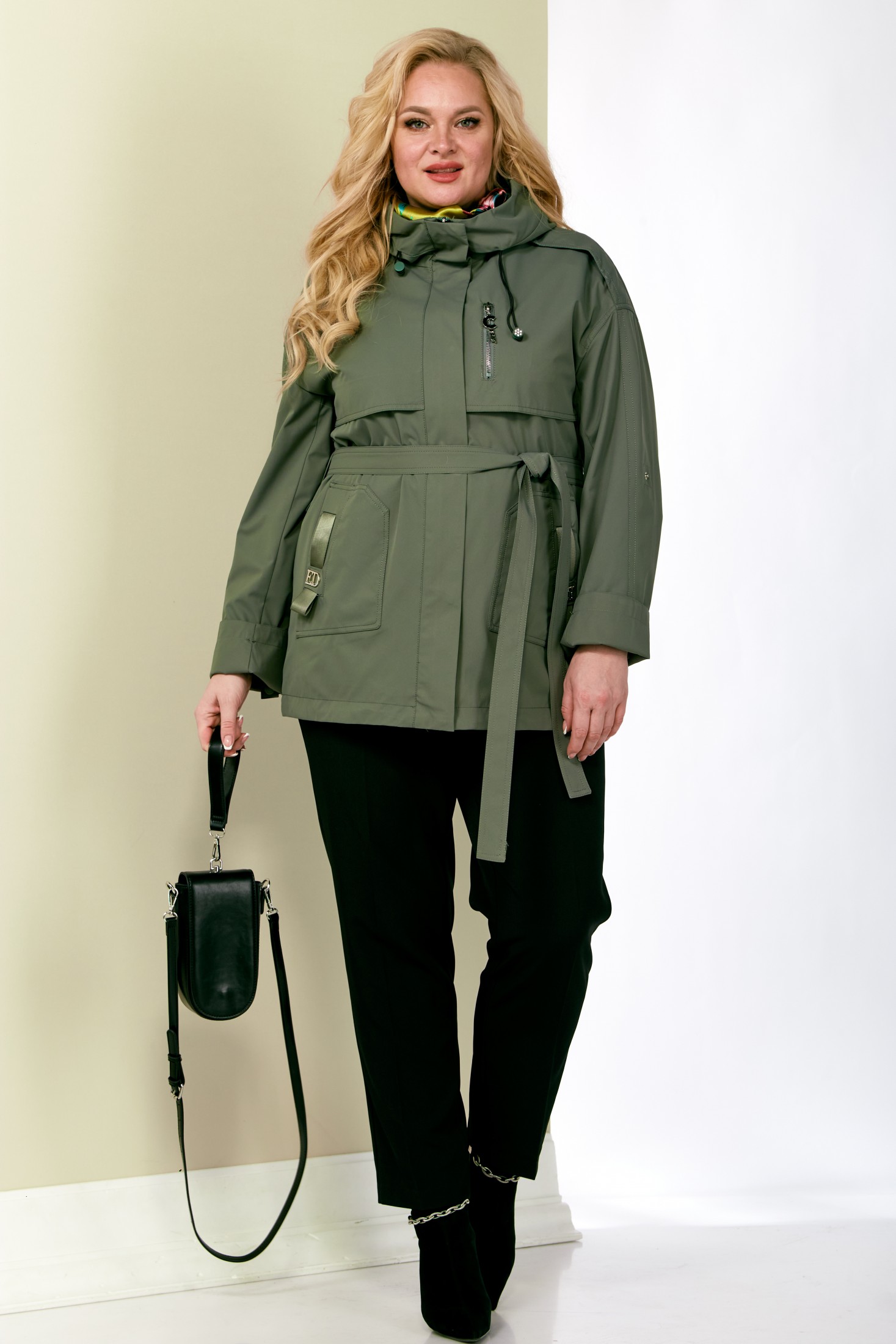 Лёгкая куртка на весну станет комфортной и универсальной верхней одеждой на все случаи жизни. Даже летними прохладными вечерами будет находкой в современном дамском гардеробе. Модель прямого силуэта, выполнена из качественной плащевой ткани, без утеплителя, на подкладке. Достаточно плотная плащевка, при этом довольно мягкая. Капюшон изделия втачной, регулируется декоративным шнуром. Застежка центральная на молнии с планкой на потайные кнопки. По переду отлетная кокетка с декоративным элементом и функциональные накладные карманы на кнопках. Рукав втачной длинный с патой на кнопку. Спинка на кокетке и центральным швом. Модель полномерная, с идеальной посадкой. Эта куртка универсальная находка для повседневной носки и подойдет на любой возраст. И будет выгодно смотреться под любой образ и любую обувь. В комплекте съемный пояс.