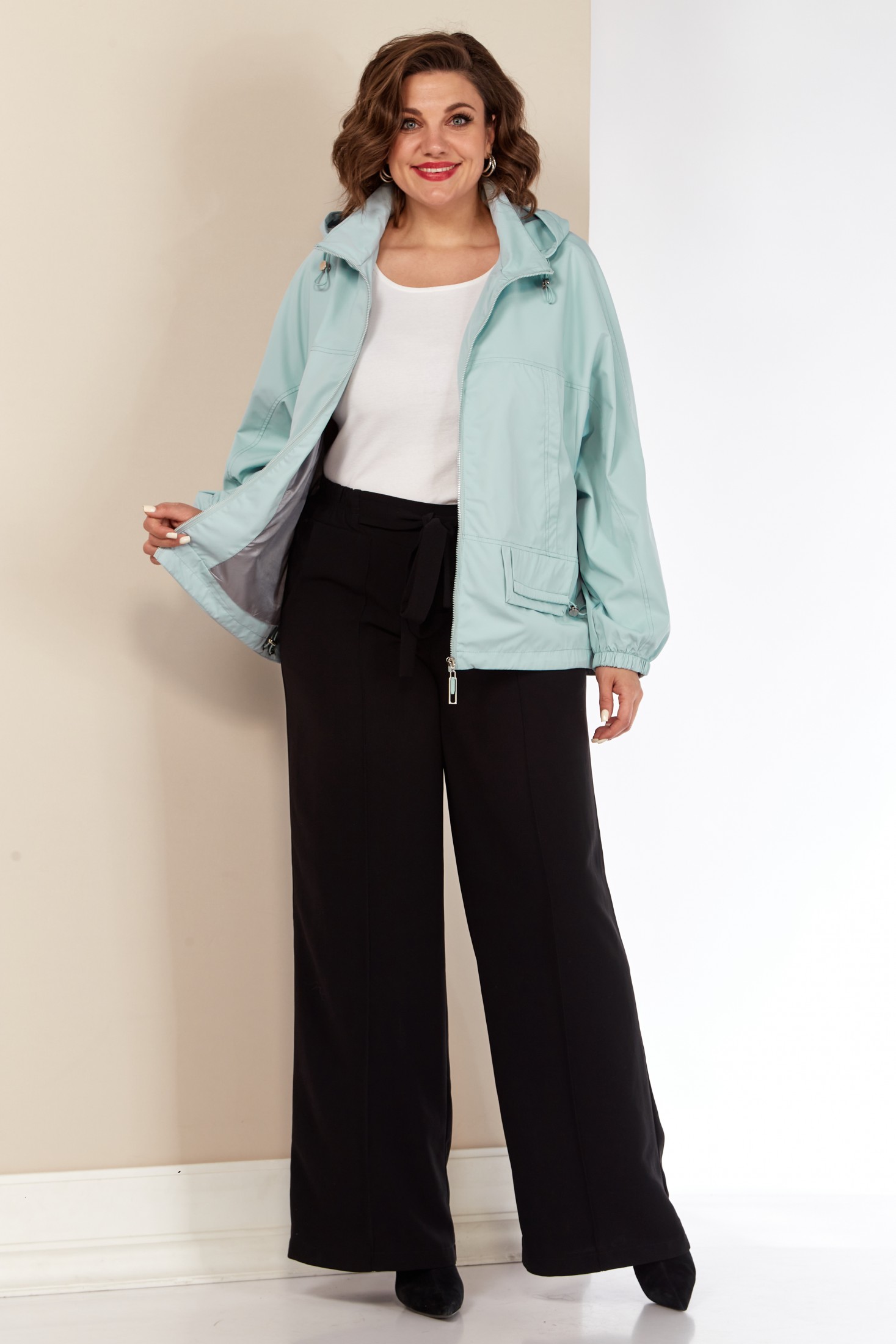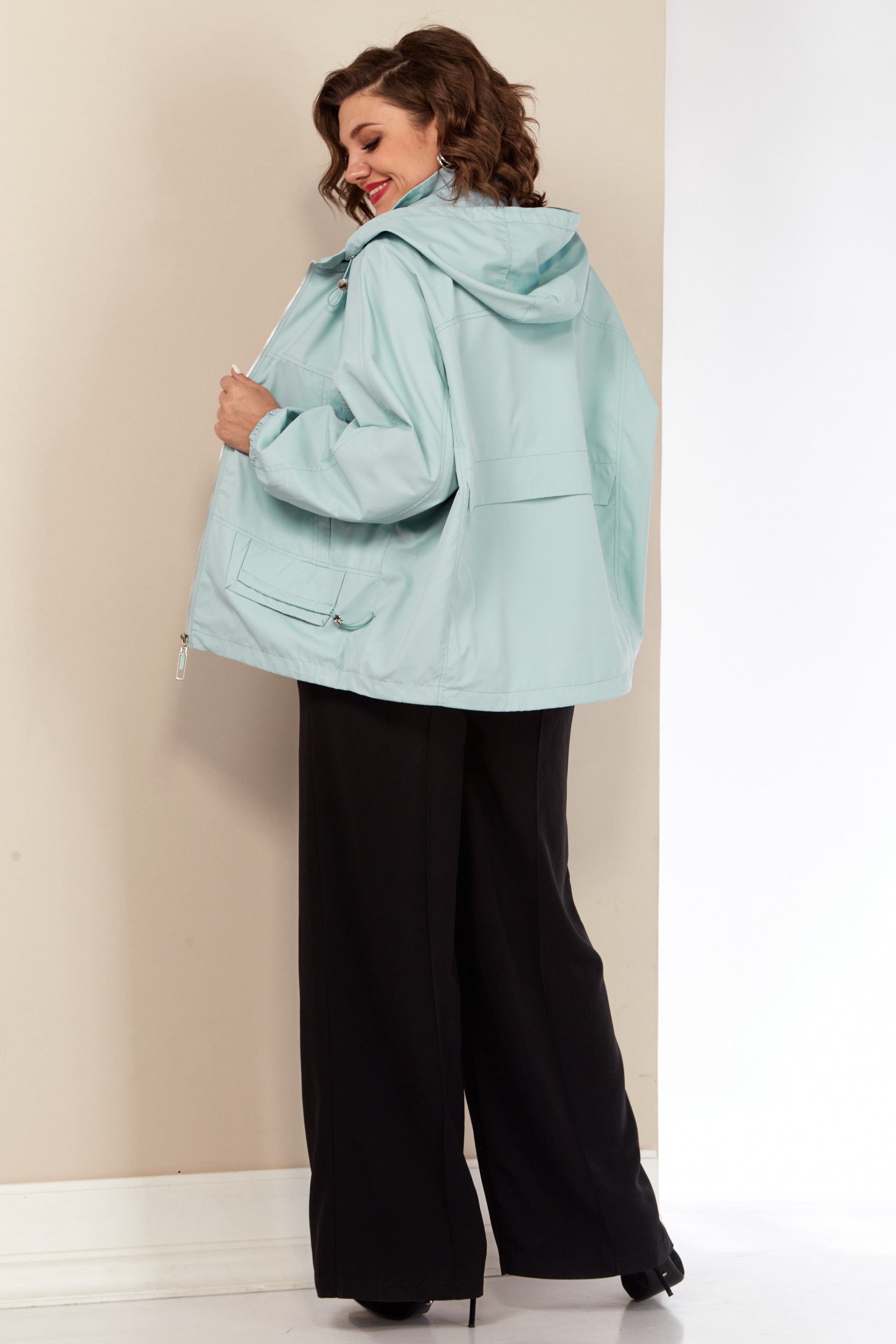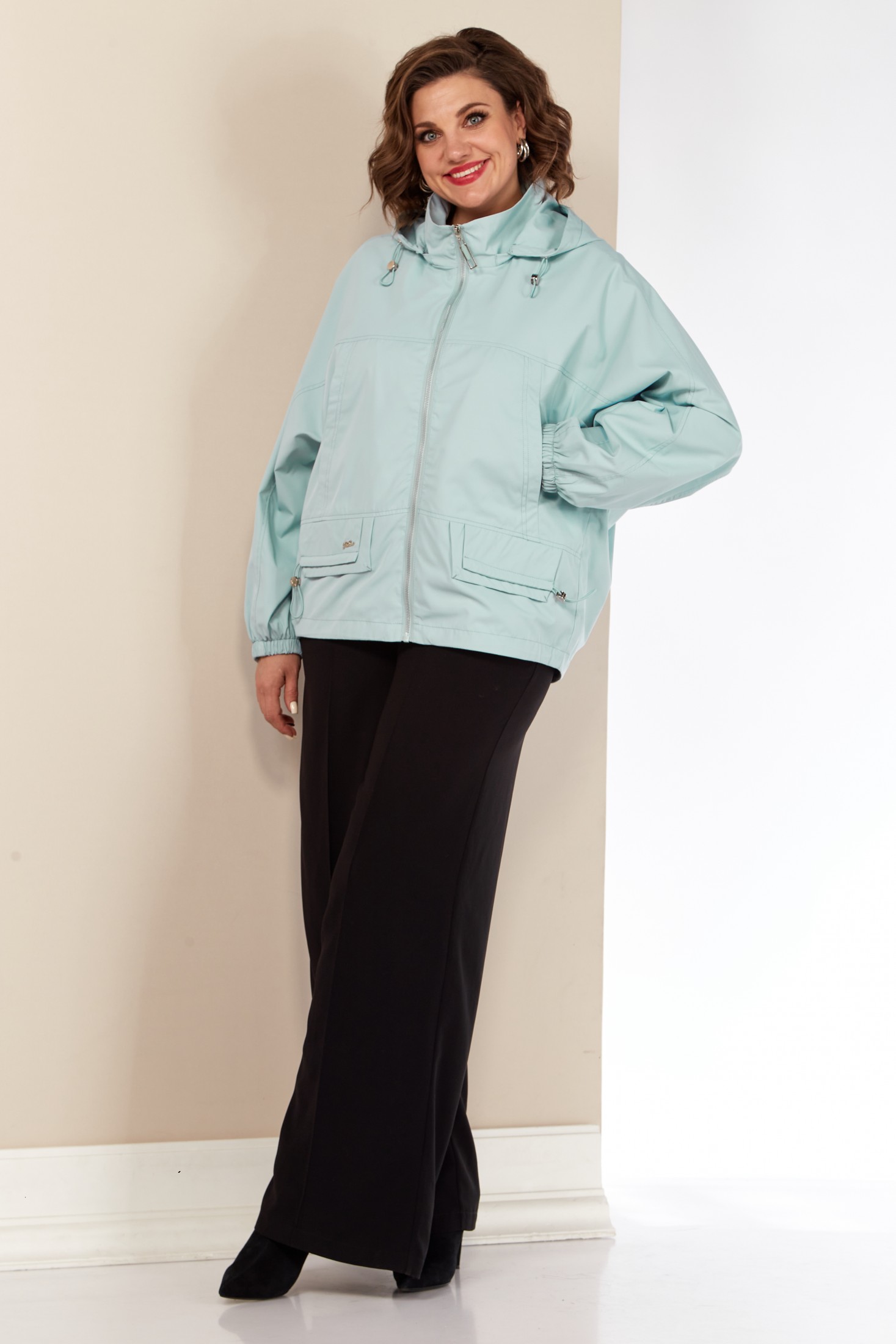 Модная женская куртка с капюшоном идеальный выбор для весенне-летних дней. Модель представлена в приятных нежных расцветках. Свободного силуэта, выполнена из плащевой ткани, без утеплителя, на подкладке. Перед с нагрудными прорезными карманами на внутренних магнитах, а также в нижней части с декоративными клапанами с кулисой на фиксаторе. Капюшон изделия съемный, регулируется декоративным шнуром. Застежка центральная на молнии. По переду и спинке горизонтальная кокетка, переходящая в рукав.