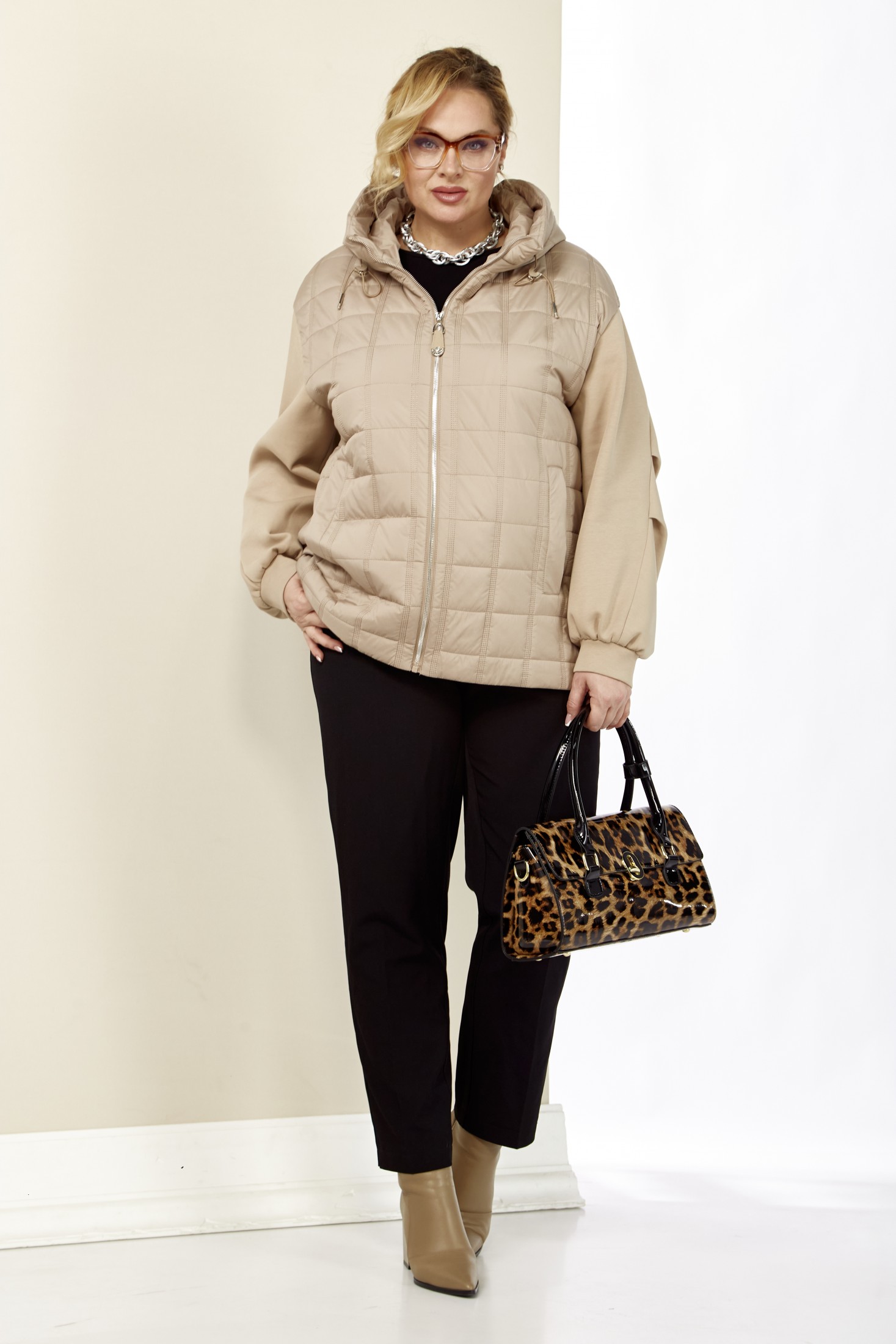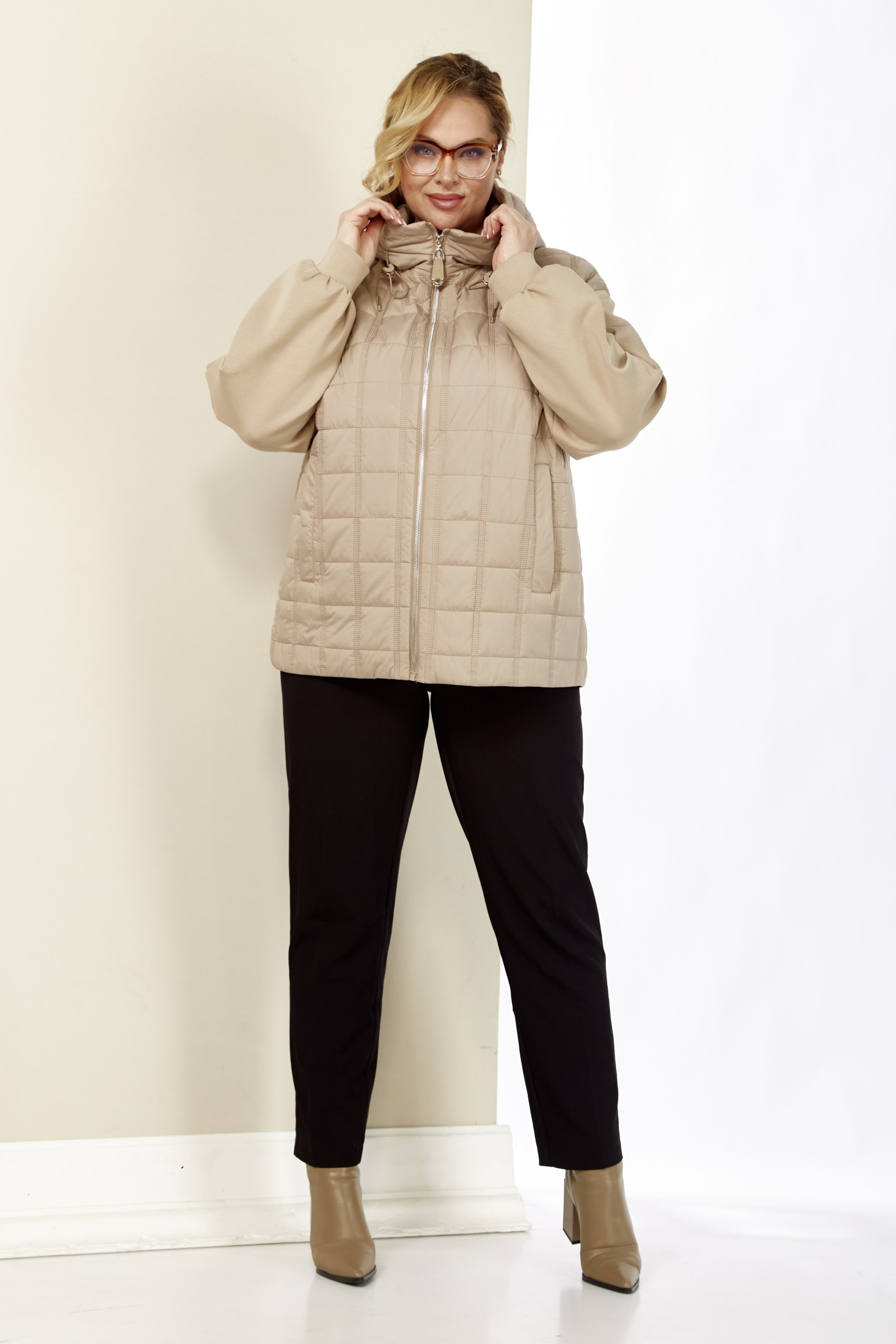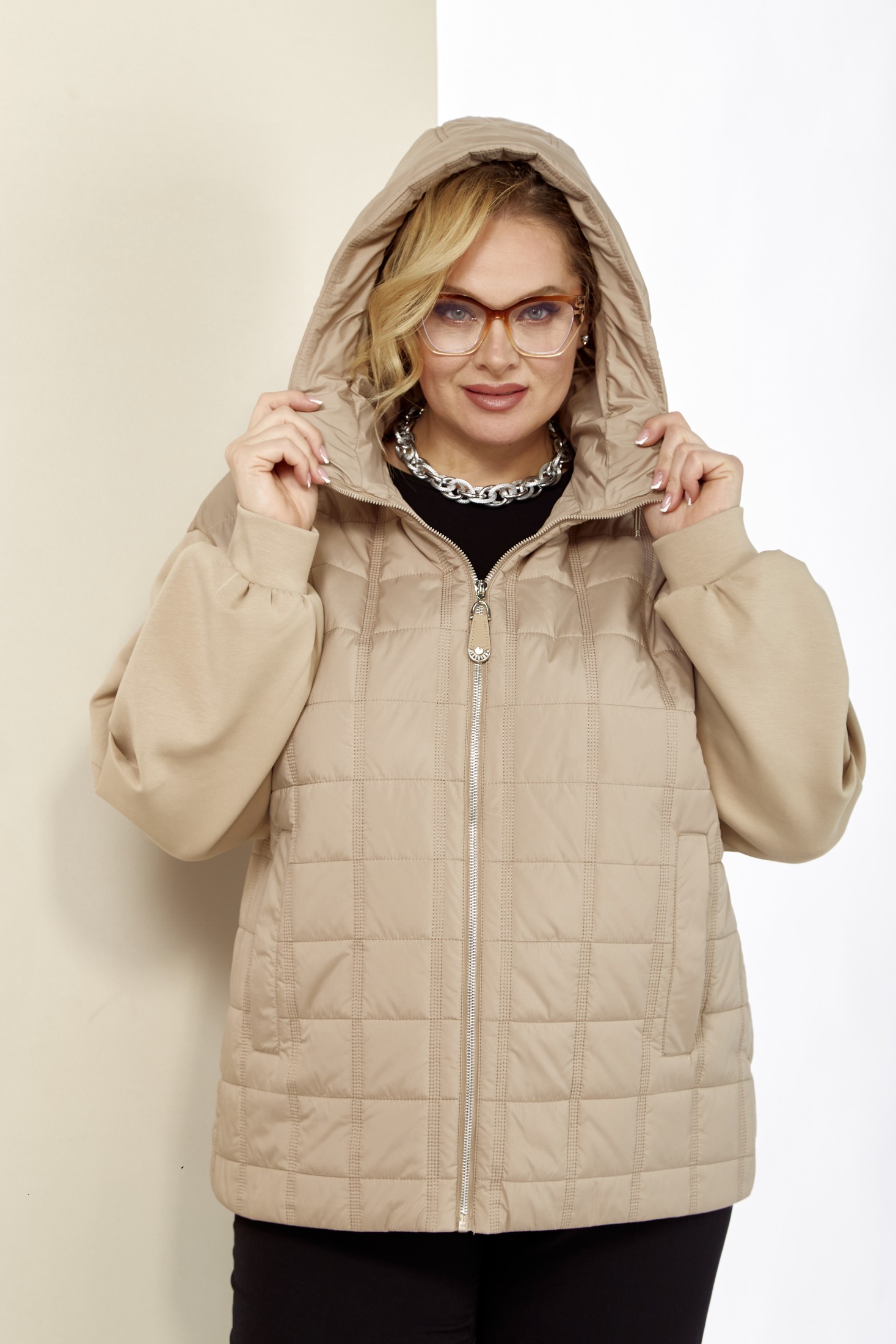 Женская, демисезонная куртка для тех, кто ценит стиль и комфорт в весенние дни. Эта куртка станет отличным вариантом для межсезонья, когда погода может быть непредсказуемой. Куртка выполнена из комбинированных, качественных материалов. Утеплитель синтепон, изделие на подкладке. Застежка центральная на молнии с декоративной подвеской. По переду куртки действующие карманы на внутренних кнопках. Рукав втачной, двухшовный, по локтевому шву выполнены две глубокие, воздушные складки для удобства и свободного облегания. Рукава на манжетах, выполнены из плотного трикотажа. Капюшон не съемный, с фиксирующейся кулисой и декоративными элементами. Спинка прямая, цельнокроенная. Низ изделия на регулируемой кулисе. Эта куртка идеально сочетается с повседневной одеждой и легко комбинируется с различными образами, от спортивного до романтичного. Температурный режим от 0 до +15.