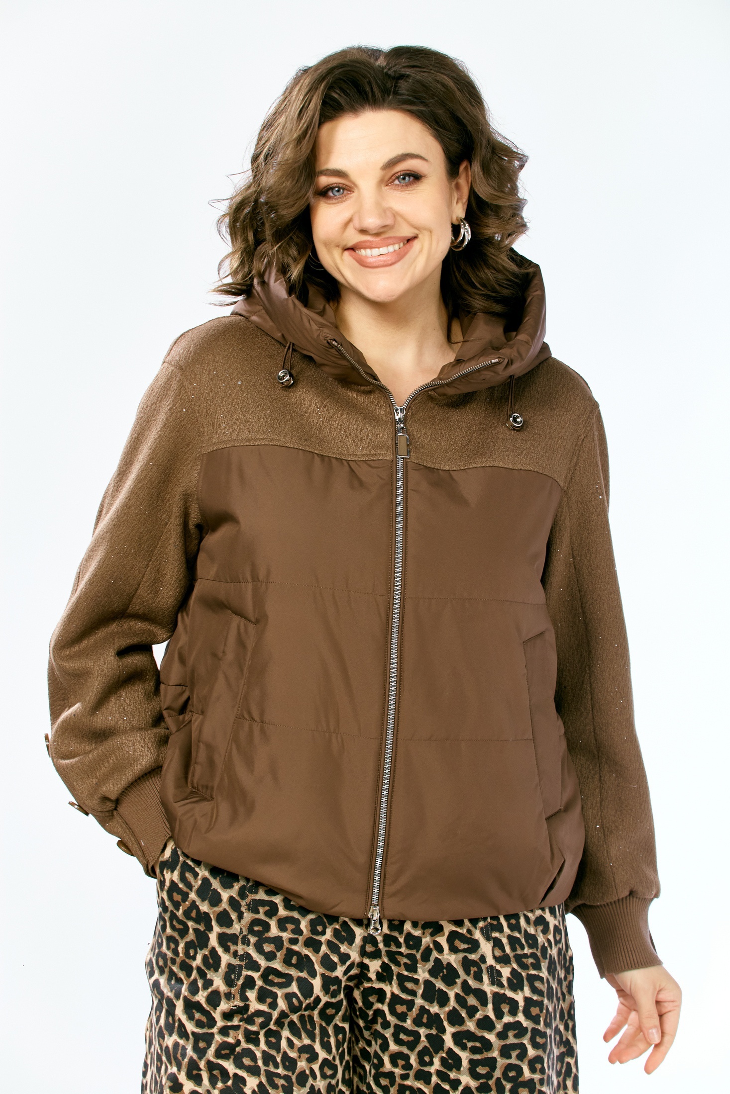 Куртка 2212 Shetti — идеальный выбор для межсезонья. Коллекция бренда Shetti сочетает в себе стиль и функциональность. Выполненная из полиэстера, куртка обеспечивает оптимальную теплоизоляцию благодаря утеплителю плотностью 100 г/кв. м. Центральная застёжка на двухбегунковую молнию и регулируемый капюшон с декоративной кулисой защищают от ветра. Особенностью является кокетка из твидовой ткани с мерцанием. Рукава с манжетами и декоративными пуговицами, фигурный низ с удлинённой спинкой создают оригинальный образ. Подходит для городской среды в демисезонный период при температуре от -5° до +15°С.