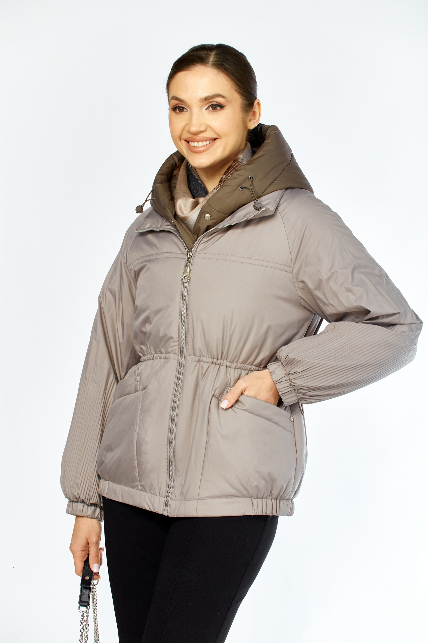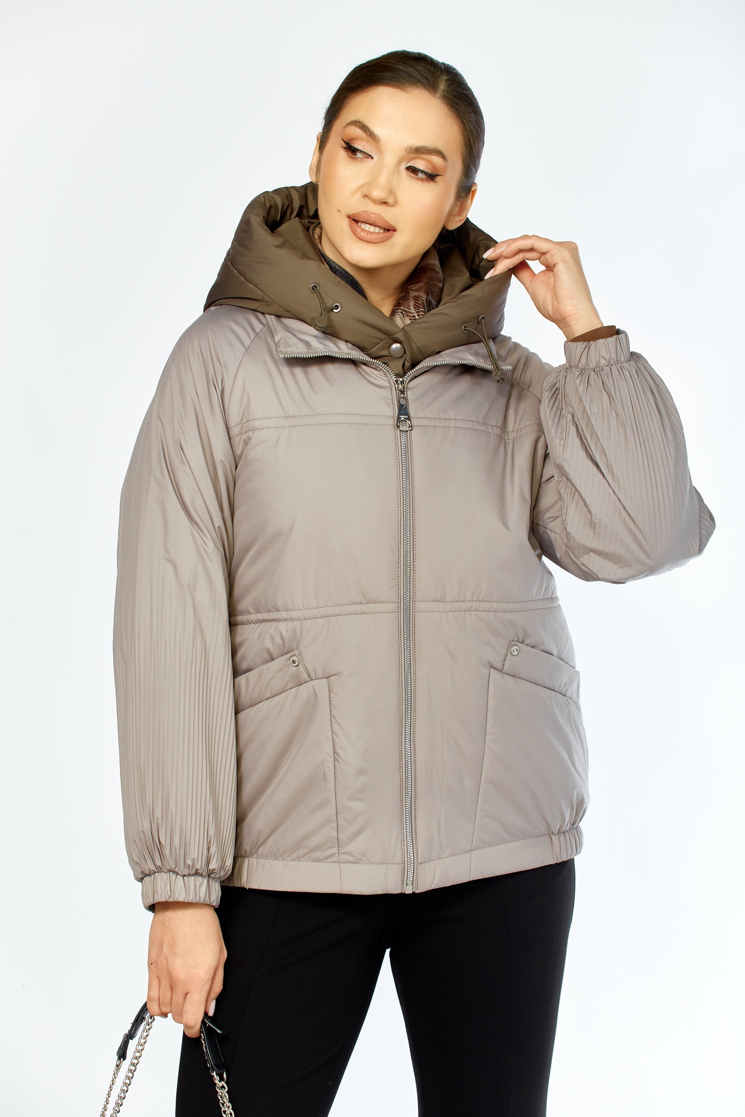 Куртка 2213 бежево-серый Shetti — это стильное и универсальное решение для осени и весны. Коллекция бренда Shetti предлагает модель, выполненную из мягкой курточной ткани с водоотталкивающей пропиткой и сатиновой подкладкой. Центральная застежка с кнопками и молнией тесьмы обеспечивает надежное закрытие. Куртка оснащена съемным капюшоном и регулируемым талиевым шнурком для индивидуальной посадки. Втачные карманы на магнитных кнопках и декоративные элементы добавляют уникальности. Рукава со спущенной линией плеча на резинке обеспечивают комфорт. Бежево-серая цветовая палитра делает изделие универсальным для различных образов.