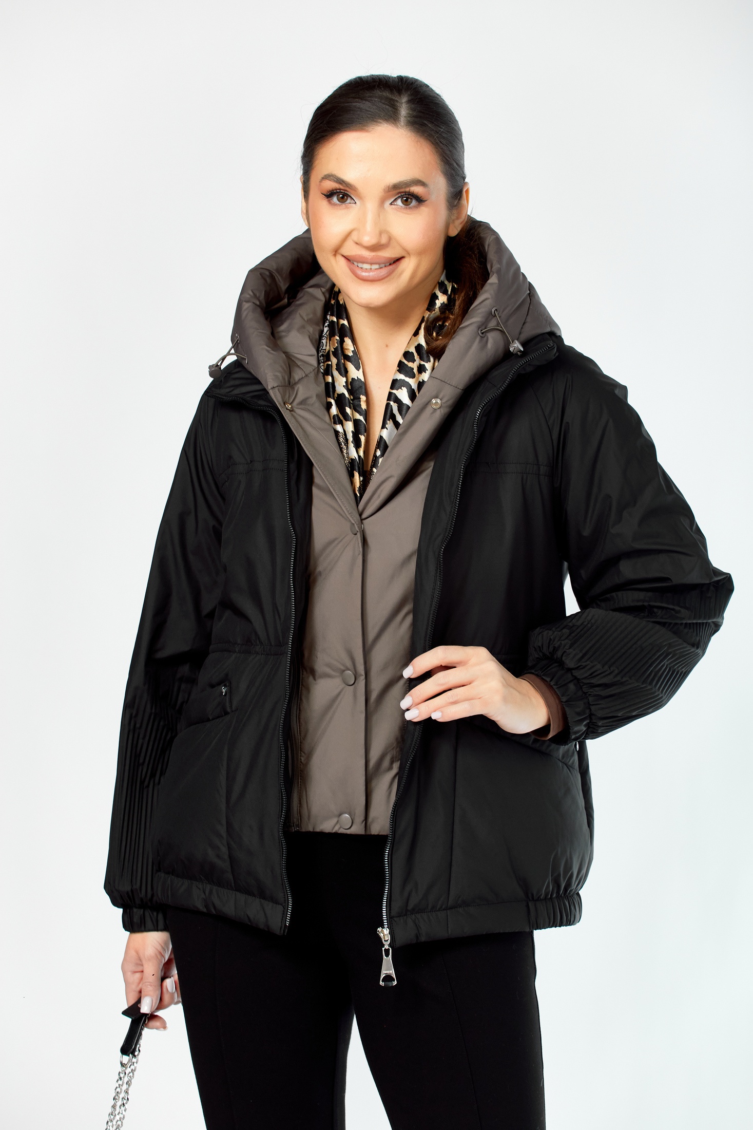Куртка 2213 бежево-серый Shetti — это стильное и универсальное решение для осени и весны. Коллекция бренда Shetti предлагает модель, выполненную из мягкой курточной ткани с водоотталкивающей пропиткой и сатиновой подкладкой. Центральная застежка с кнопками и молнией тесьмы обеспечивает надежное закрытие. Куртка оснащена съемным капюшоном и регулируемым талиевым шнурком для индивидуальной посадки. Втачные карманы на магнитных кнопках и декоративные элементы добавляют уникальности. Рукава со спущенной линией плеча на резинке обеспечивают комфорт. Бежево-серая цветовая палитра делает изделие универсальным для различных образов.