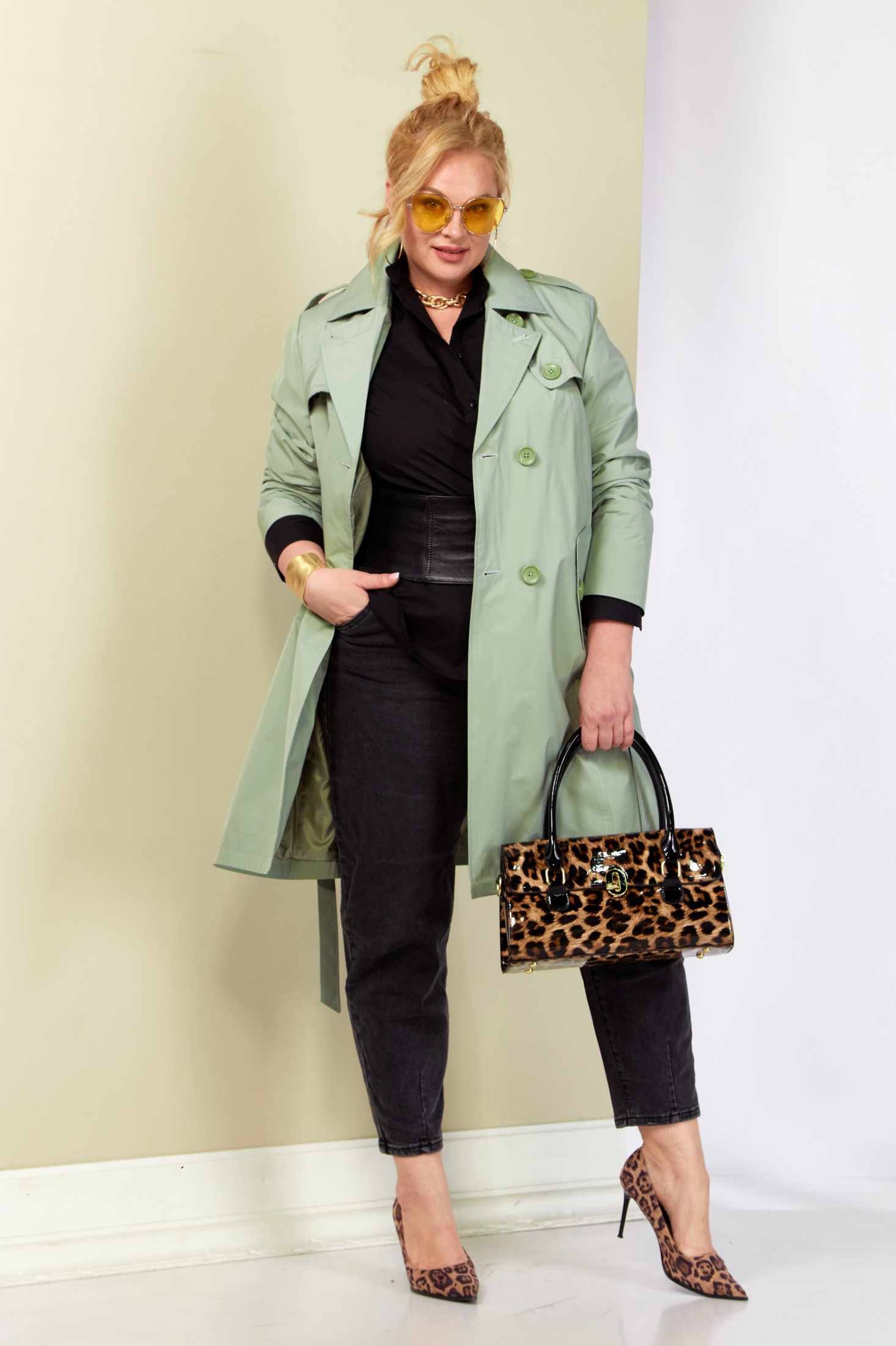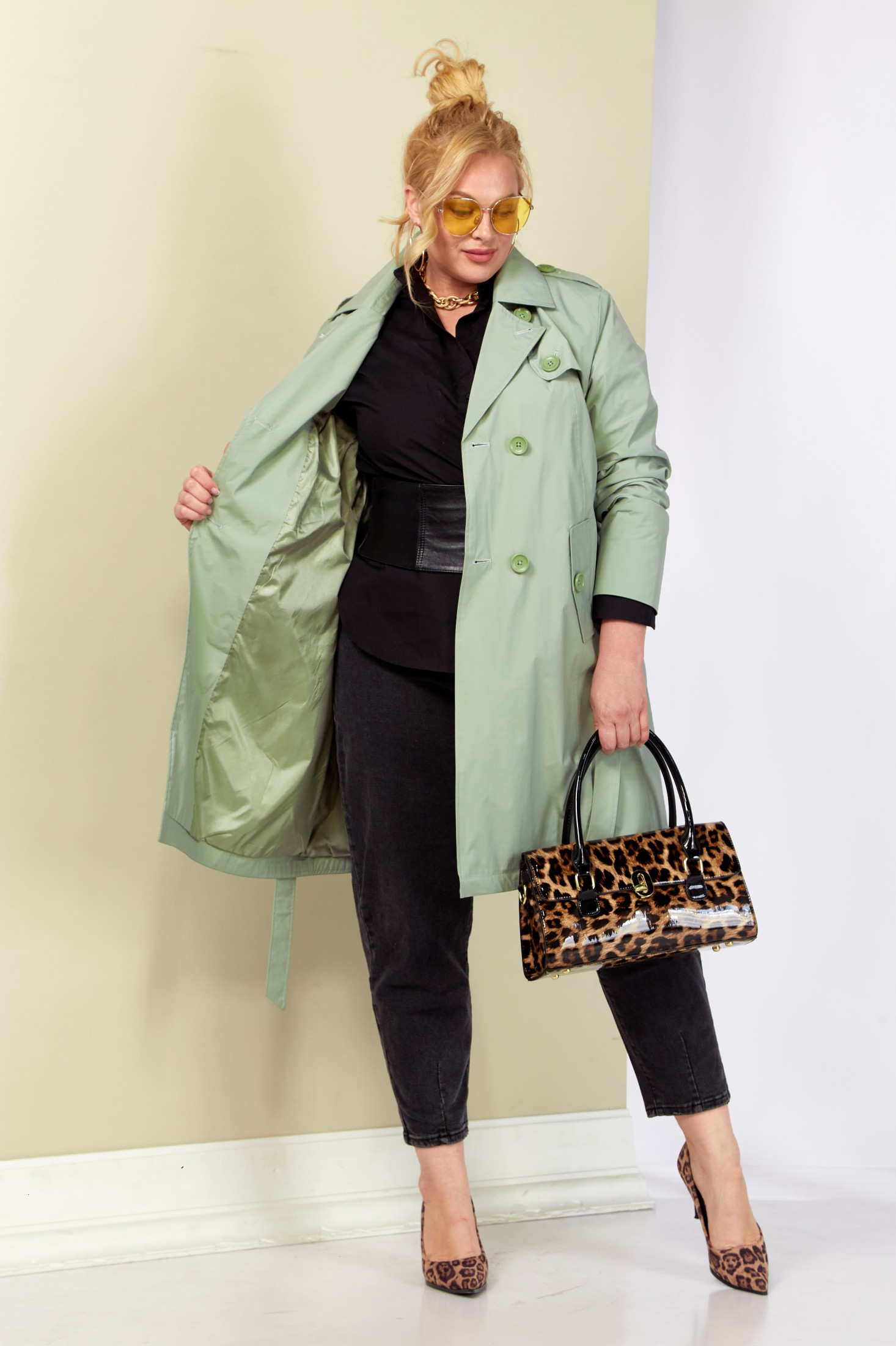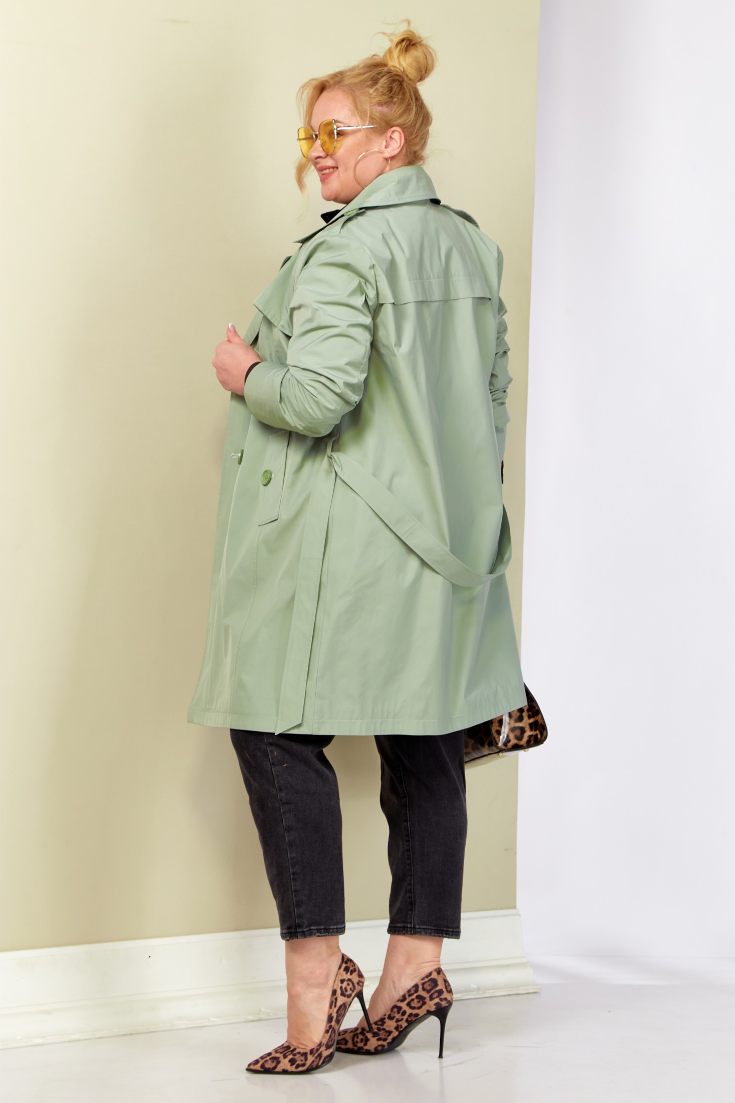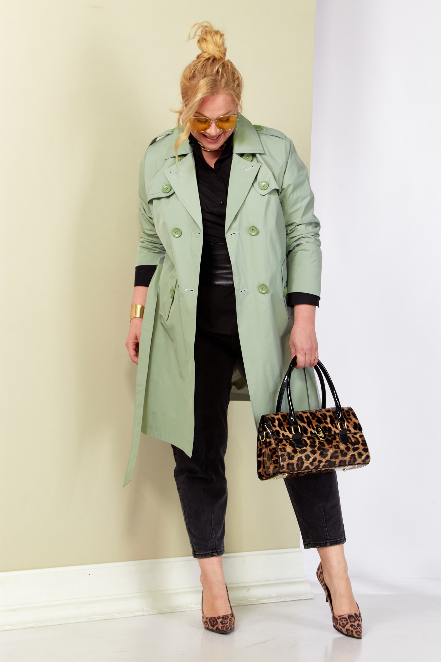 Современный, модный и стильный плащ на весенний период. Изготовлен из плащевой мягкой ткани, без утеплителя, на подкладке. Застежка двубортная. Горловина оформлена широким воротником пиджачного типа. Рукав втачной, длинный, что делает его практичным выбором для переменчивой погоды. Длина регулируется с помощью отворота. Передняя часть с отлетной кокеткой и двумя фунуциональными карманами на внутренних магнитах. Изделие прямого, классического кроя в комплекте со съемным поясом, который придает приталенный силует и элегантность. Спинка с отрезной кокеткой.