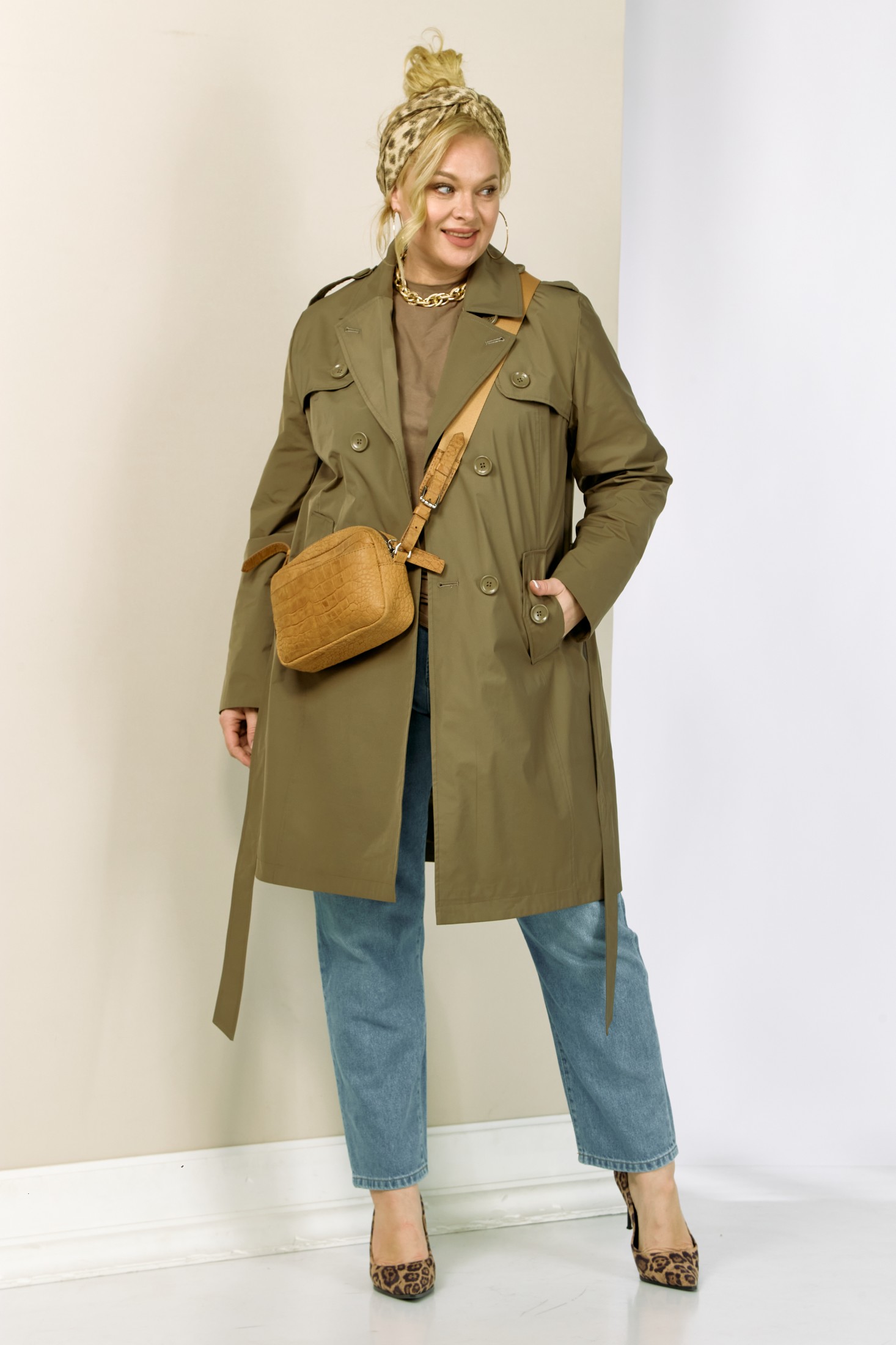 Современный, модный и стильный плащ на весенний период. Изготовлен из плащевой мягкой ткани, без утеплителя, на подкладке. Застежка двубортная. Горловина оформлена широким воротником пиджачного типа. Рукав втачной, длинный, что делает его практичным выбором для переменчивой погоды. Длина регулируется с помощью отворота. Передняя часть с отлетной кокеткой и двумя фунуциональными карманами на внутренних магнитах. Изделие прямого, классического кроя в комплекте со съемным поясом, который придает приталенный силует и элегантность. Спинка с отрезной кокеткой.