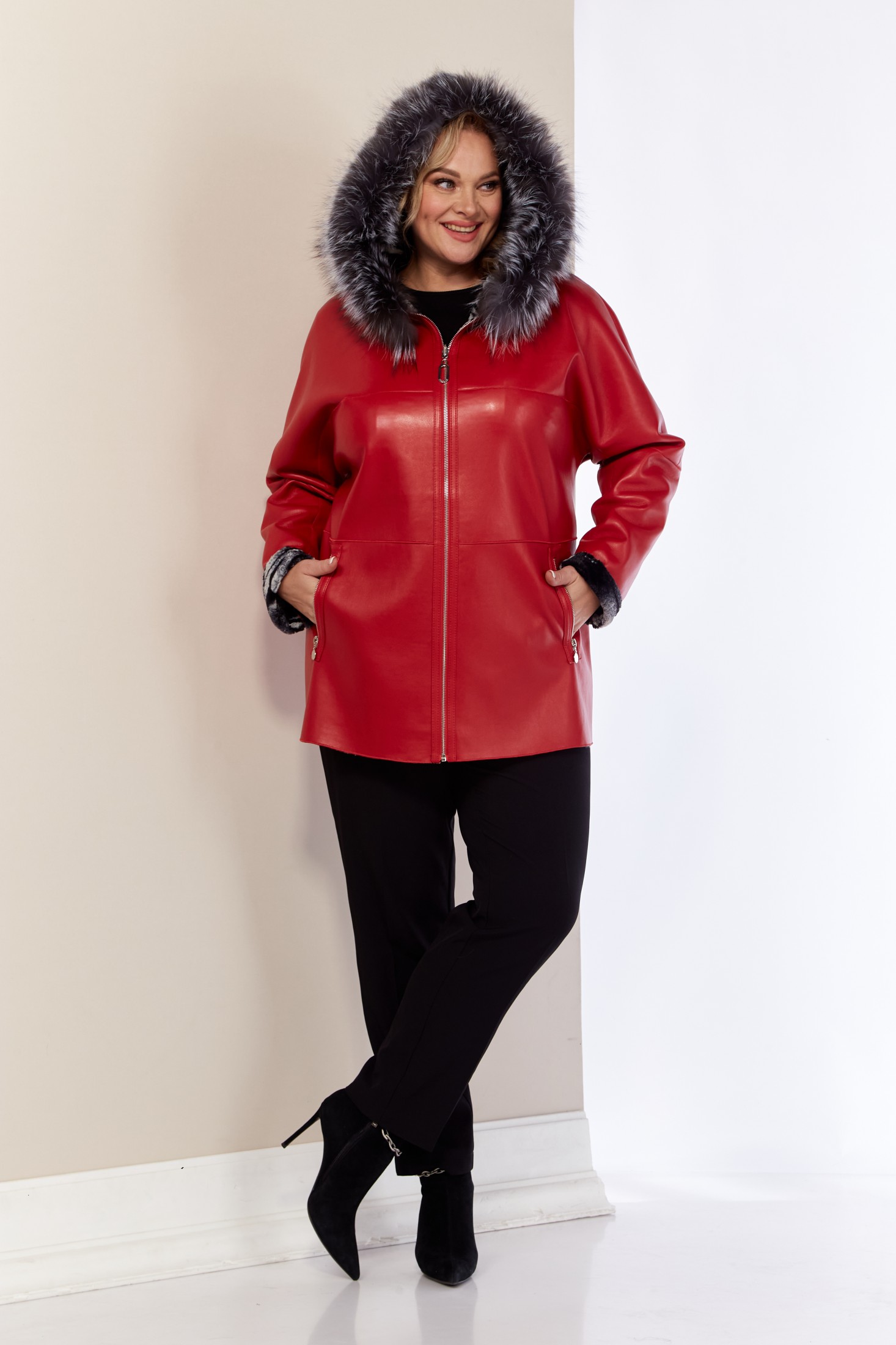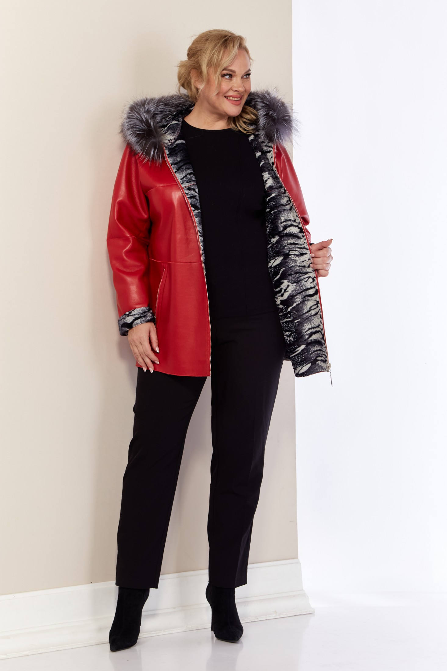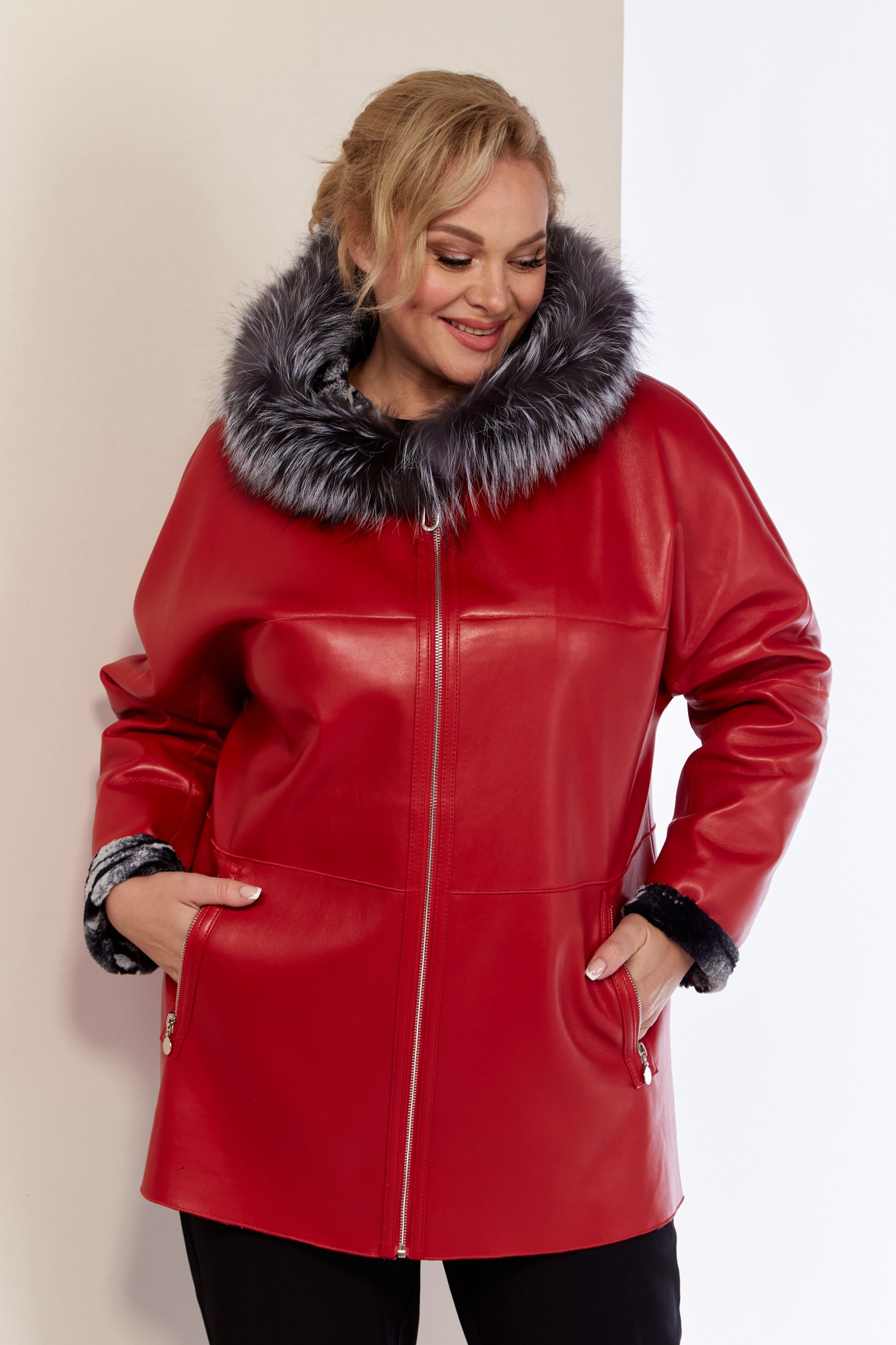 Двусторонняя дубленка – отличное решение для осеннего и зимнего сезона. Эта женская куртка сочетает в себе стиль и функциональность. Капюшон защитит от холода и ветра, придавая изделию уютный вид. А опушка из натурального меха «Чернобурка» - оригинальность. Дубленка выполнена из искусственной кожи с одной стороны и мягкой приятной к телу ткани из эко-меха с другой, что делает ее современной. Изделие имеет удобную застежку на молнию с двухсторонним бегунком. По переду однотонной стороны функциональные прорезные карманы на молнии. Капюшон не съемный, мех отстегивается.