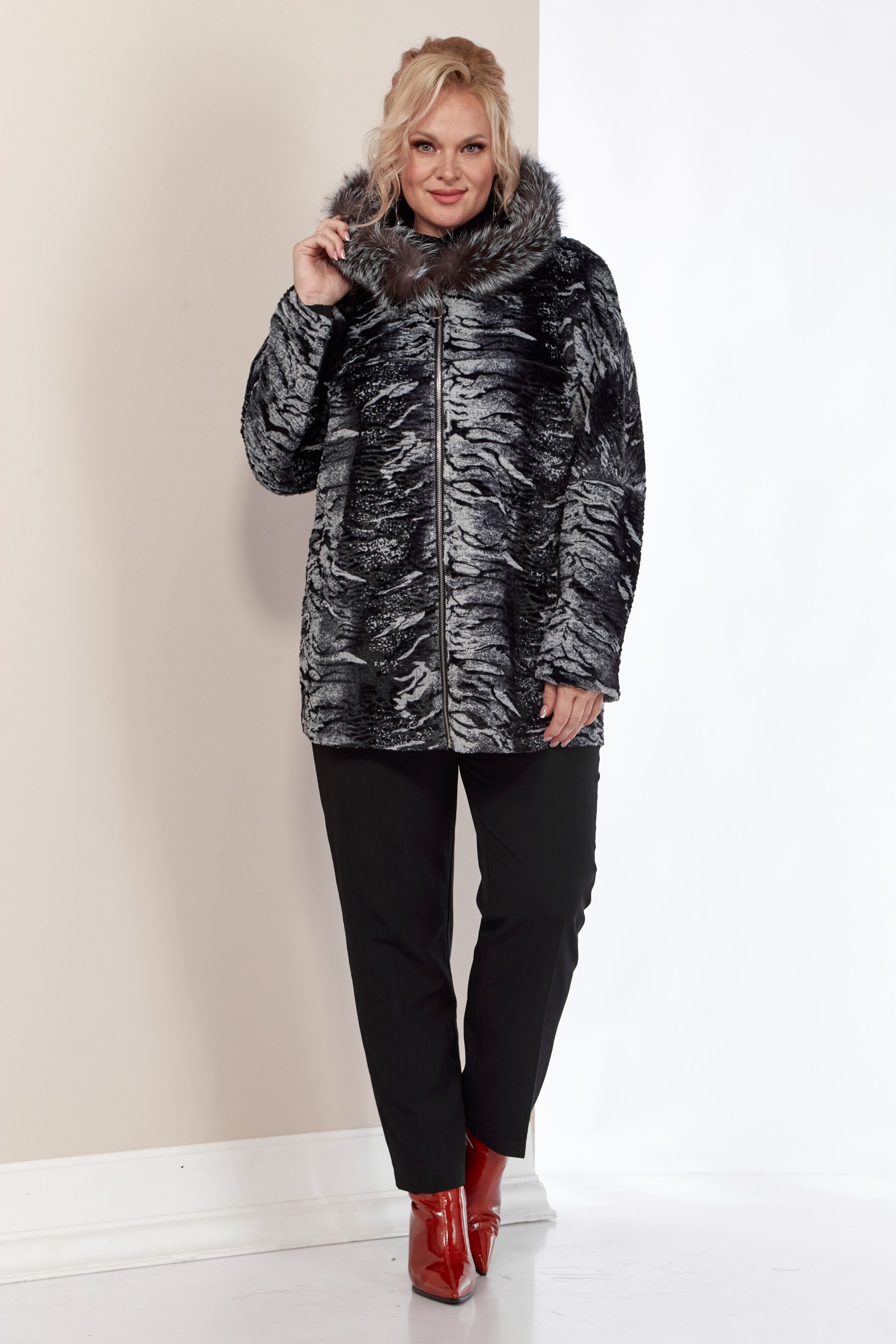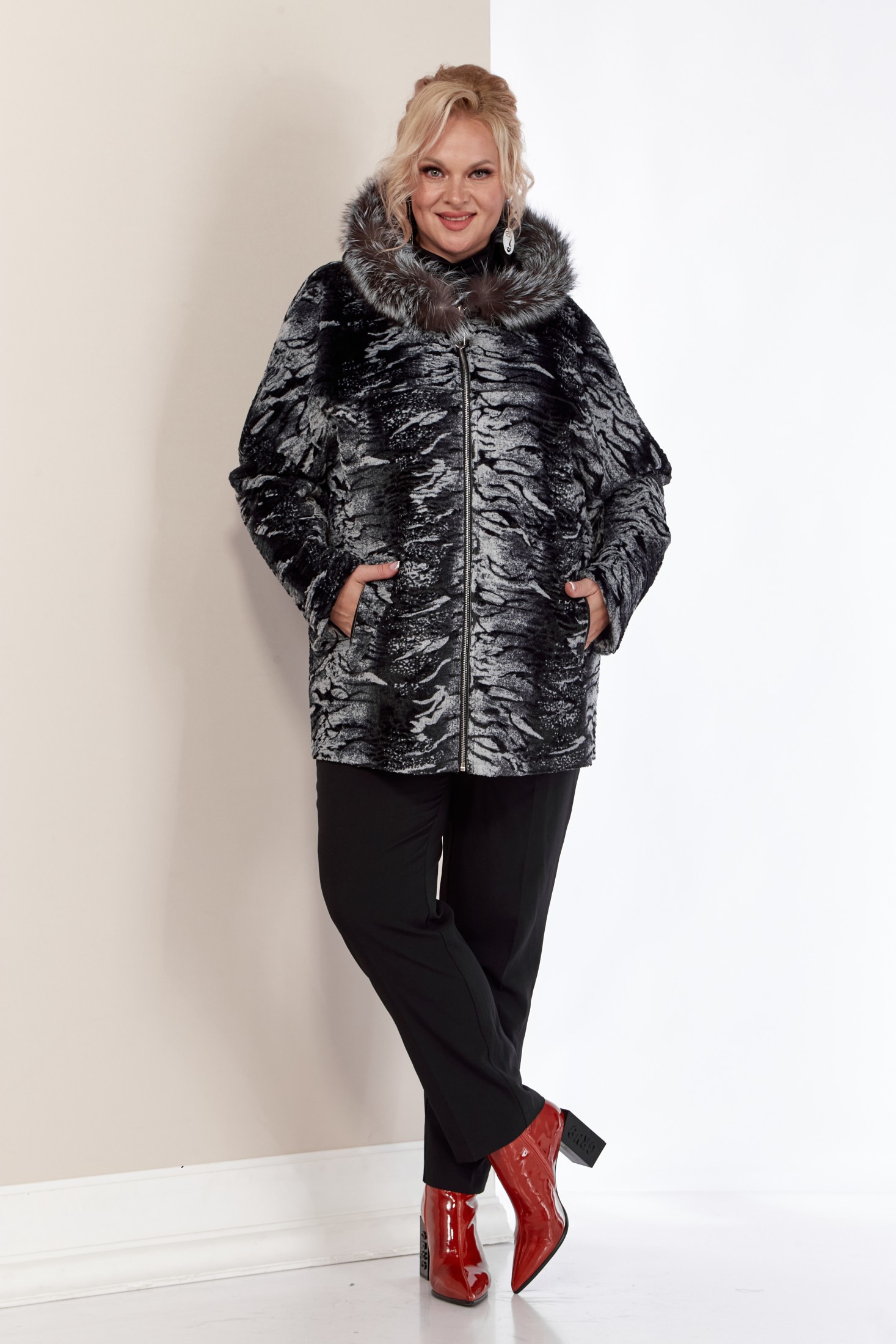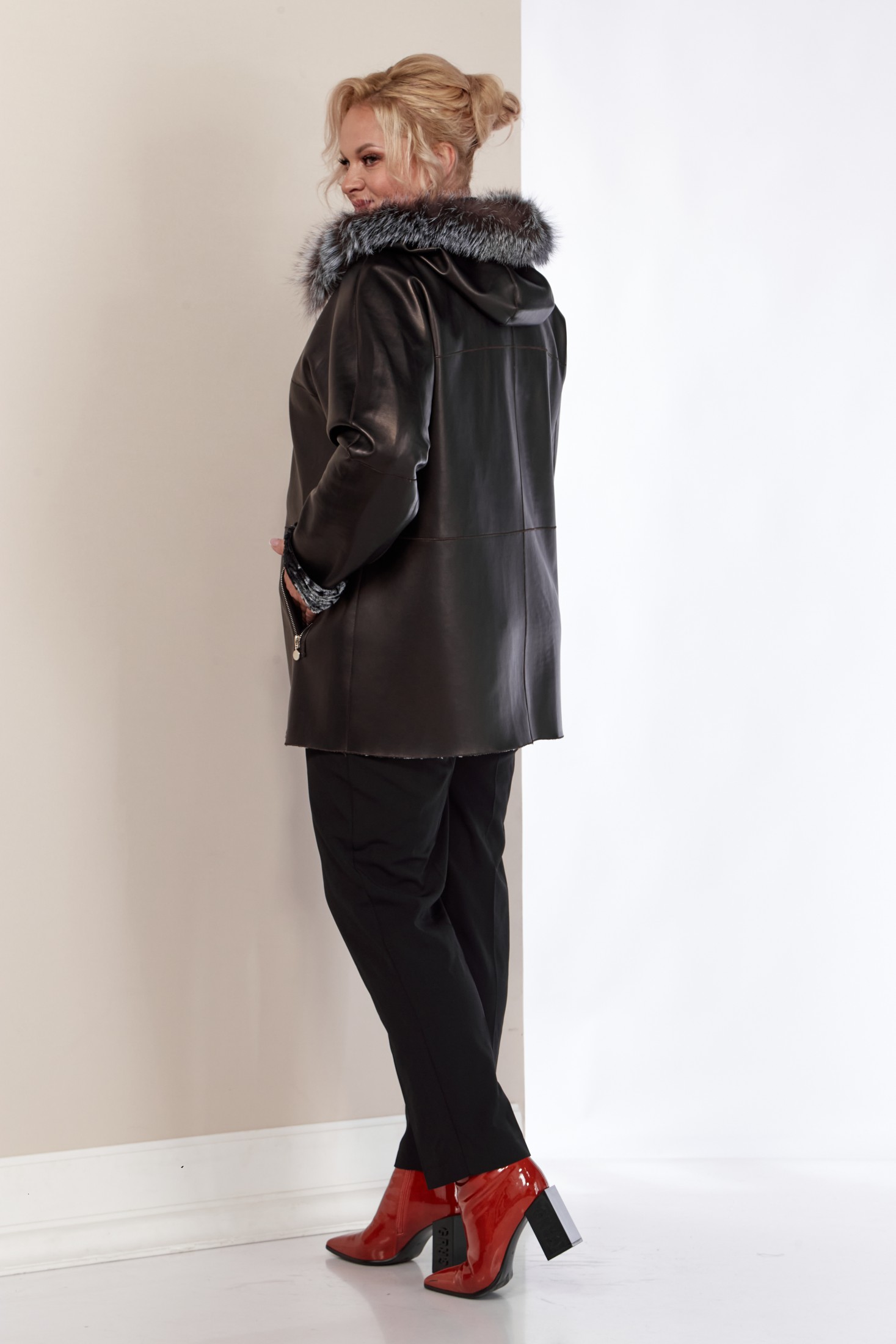 Двусторонняя дубленка – отличное решение для осеннего и зимнего сезона. Эта женская куртка сочетает в себе стиль и функциональность. Капюшон защитит от холода и ветра, придавая изделию уютный вид. А опушка из натурального меха «Чернобурка» - оригинальность. Дубленка выполнена из искусственной кожи с одной стороны и мягкой приятной к телу ткани из эко-меха с другой, что делает ее современной. Изделие имеет удобную застежку на молнию с двухсторонним бегунком. По переду однотонной стороны функциональные прорезные карманы на молнии. Капюшон не съемный, мех отстегивается.