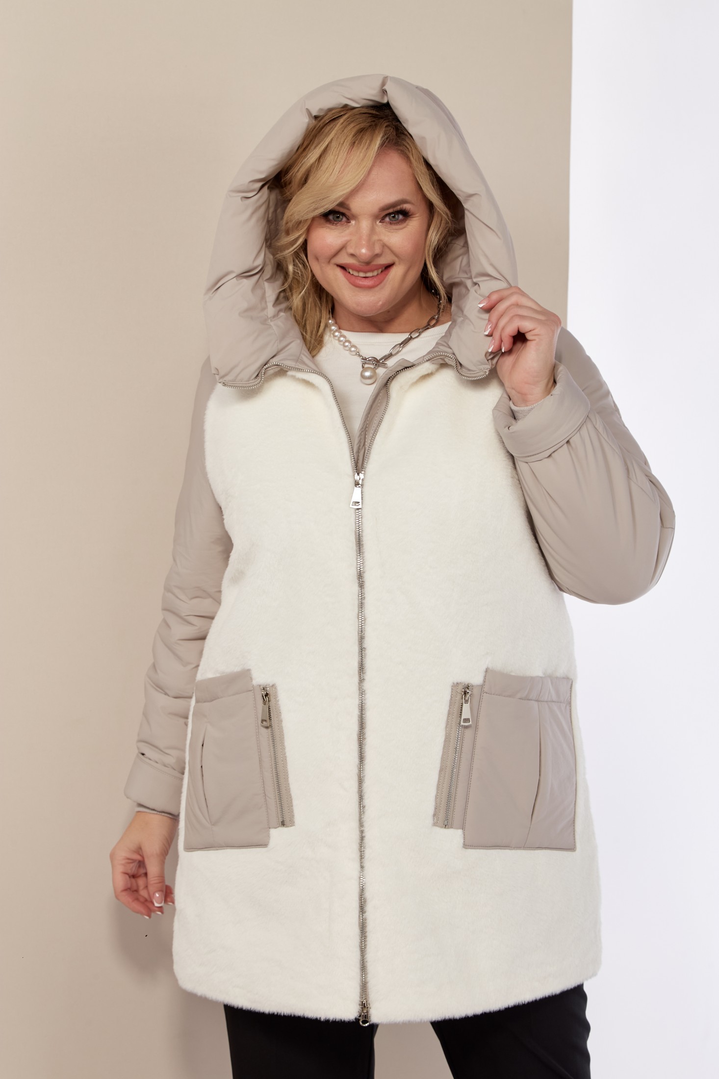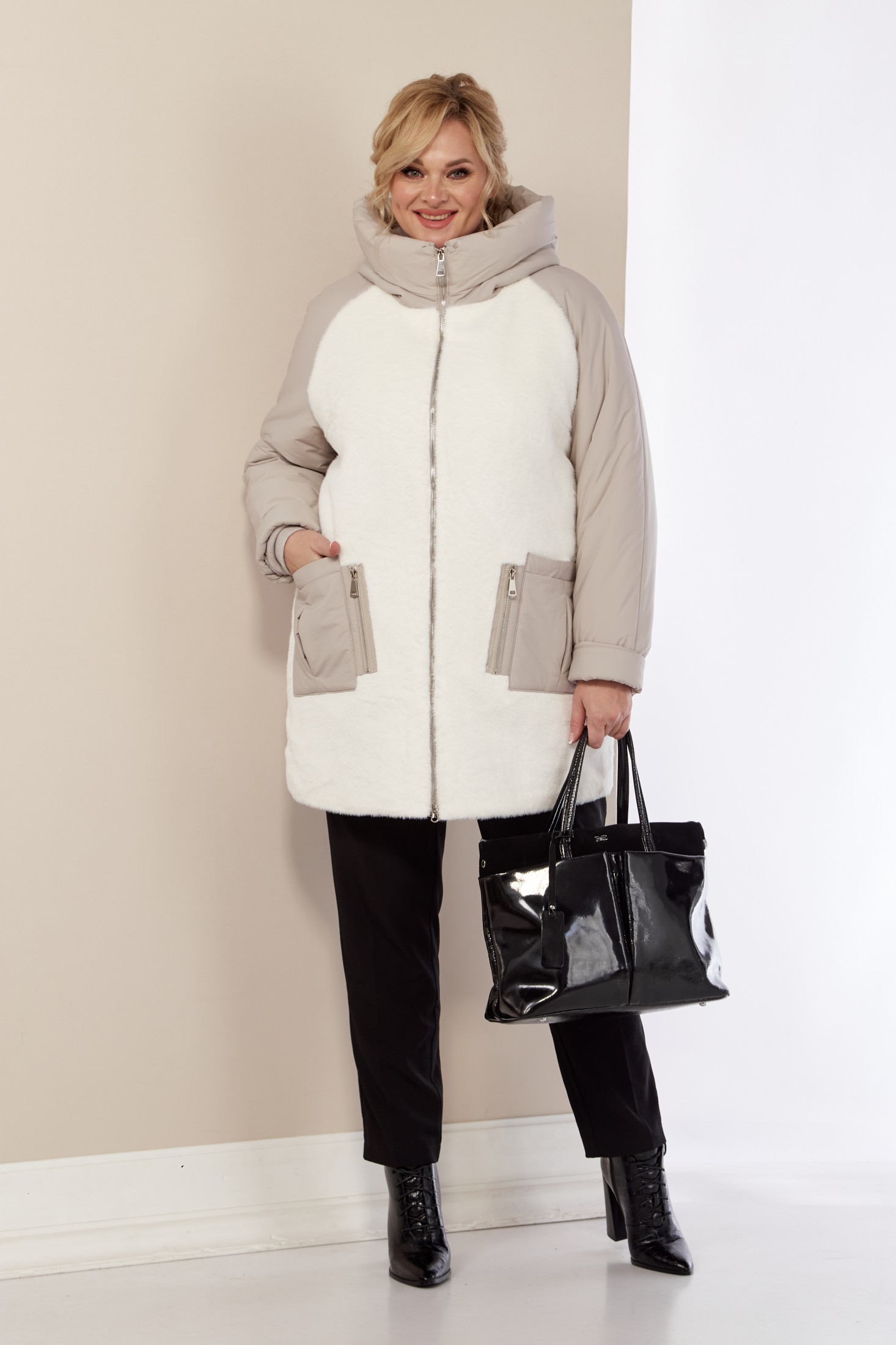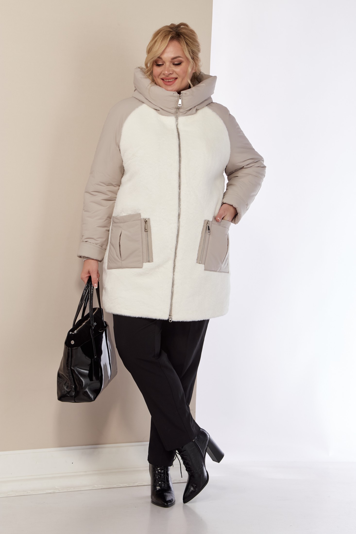 Эта зимняя легкая женская куртка станет идеальным дополнением гардероба в холодные дни. Зимняя куртка выполнена в свободном, классическом стиле (слегка расширена к низу) и подходит для любой фигуры, обеспечивая комфорт и свободу движений. Выполнена из мягкой курточной ткани с водоотталкивающими свойствами. По переду – эко-мех премиум качества. Не маркий, легко стирается и быстро сохнет. Утеплитель «Верблюжья шерсть» хорошо держит форму и не сбивается. Воротник стойка и глубокий капюшон надежно защитят от дождя и снега. В передней части куртки функциональные, глубокие, накладные карманы на внутренних магнитах и декоративным элементом. Застежка центральная на молнию с двойным бегунком. Рукав реглан. Для защиты от ветра и мороза, рукава по низу дополнены внутренними трикотажными манжетами. Спинка декорирована не навязчивой вышивкой, что придает изделию оригинальный вид. С внутренней стороны куртки имеется внутренний карман.