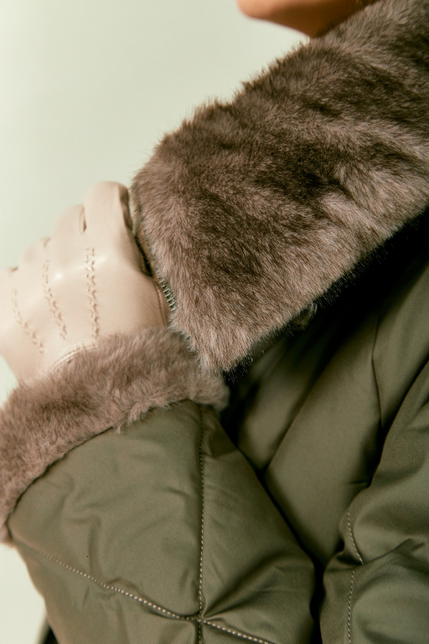 Уютная, элегантная зимняя куртка станет любимой вещью Вашего гардероба! Куртка выполнена из мягкой, матовой курточной ткани с водоотталкивающим эффектом. На качественной сатиновой подкладке из поливискозы. В качестве утеплителя используется «Холлофайбер» (специально разработан для зимних курток) производство Бельгия с плотностью 200 г/кв.м.. Утеплитель по своим характеристикам легкий и прекрасно держит тепло. По переду прорезные карманы с декоративным элементом на магнитах. Рукав реглан. Застежка центральная на тесьму-молнию. Капюшон и отвороты рукавов выполнены из меха, максимально по внешнему виду приближенного к натуральному «Норка», что придает изделию элегантность. Капюшон не съемный. По переду и спинке рельефные швы. Низ изделия на регулируемой кулисе, что позволит сохранить тепло в холодное время года. С внутренней стороны куртки имеется внутренний карман. Для защиты от ветра и мороза, рукава по низу дополнены внутренними трикотажными манжетами. Материал сохраняет свои качества после стирки, быстро сохнет, имеет большую воздухопроницаемость. Благодаря дорогой и качественной фурнитуре, а также отделки из эко-меха норки, изделие смотрится дорого и элегантно. Изделие предназначено на зимний период с температурой воздуха до -15°C. Уход: Деликатная машинная стирка, при t 30-40 ⁰C, либо химическая чистка.