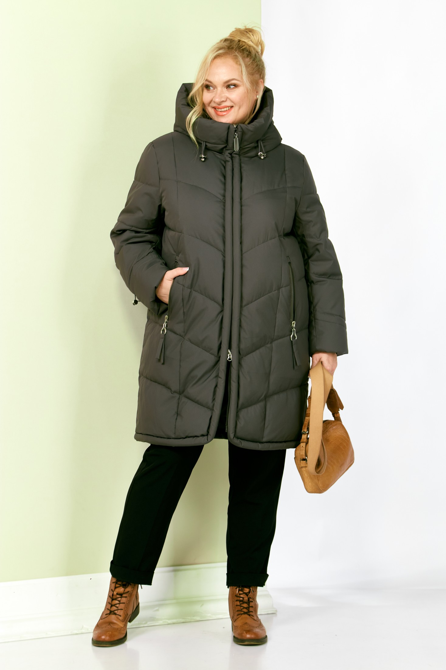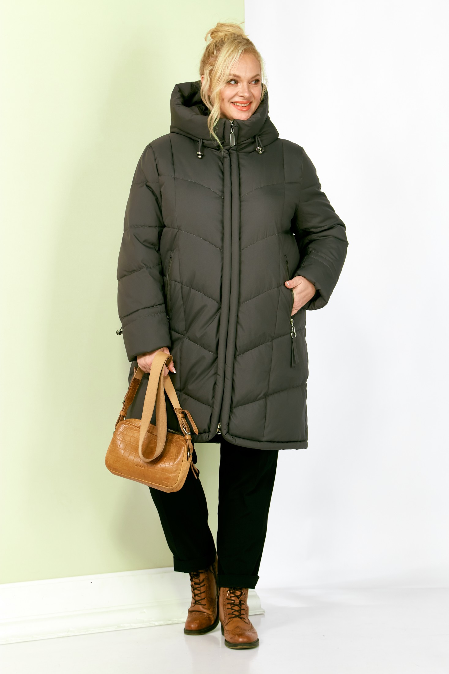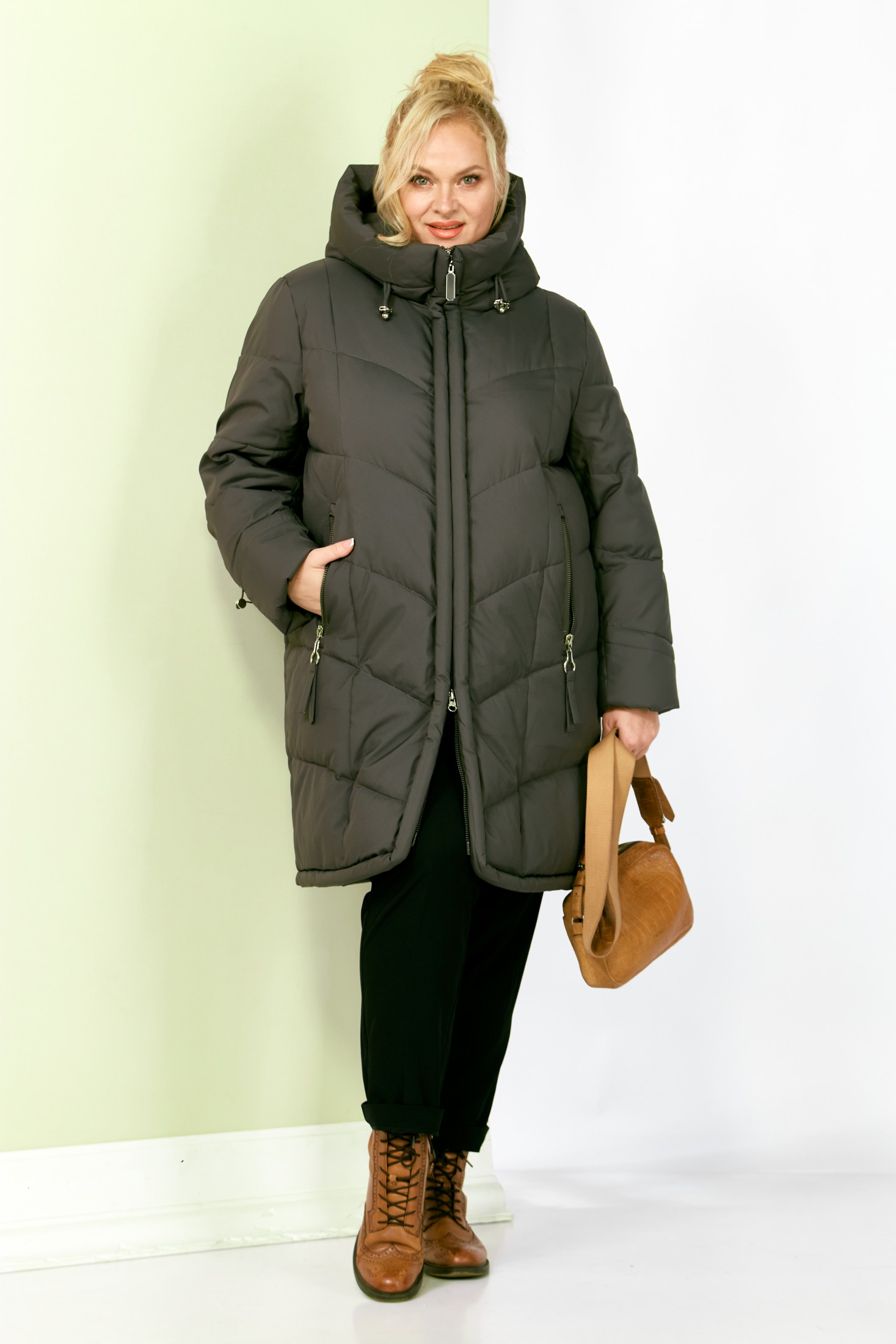 Стильное и модное женское полупальто, которое идеально подойдет для холодных дней, обеспечивая комфорт и защиту от ветра. Изделие прямого, классического стиля. Модель выполнена из курточной матовой ткани высокого качества, непромокаемая. Утеплитель «Холлофайбер» хорошо держит форму и не сбивается. По переду центральная застежка на молнии. Карманы прорезного типа с декоративным элементом. Рукав втачной. Капюшон не съемный, регулируется декоративным шнуром. По переду и спинке рельефные швы. Низ бортов с закругленным краем.