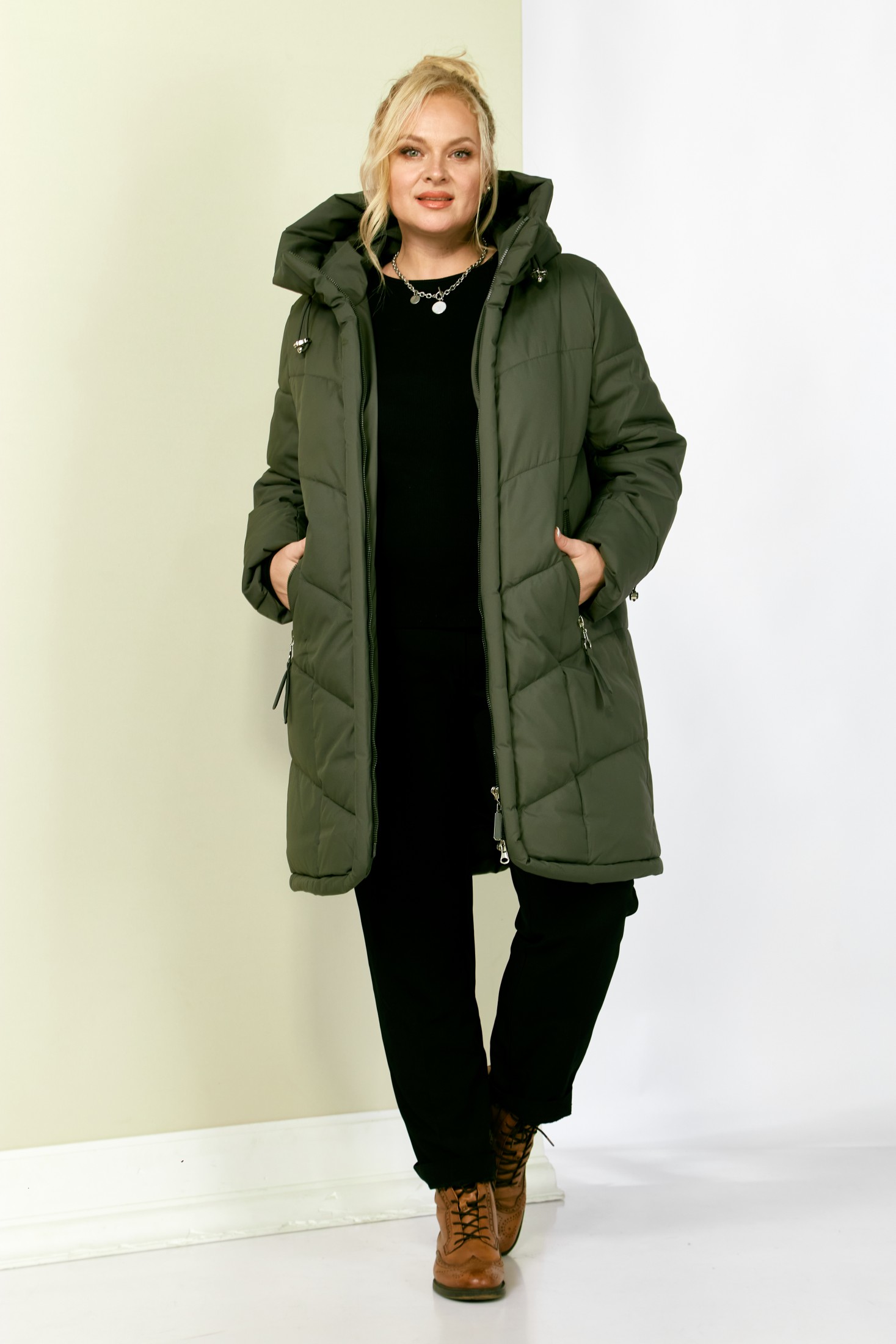 Стильное и модное женское полупальто, которое идеально подойдет для холодных дней, обеспечивая комфорт и защиту от ветра. Изделие прямого, классического стиля. Модель выполнена из курточной матовой ткани высокого качества, непромокаемая. Утеплитель «Холлофайбер» хорошо держит форму и не сбивается. По переду центральная застежка на молнии. Карманы прорезного типа с декоративным элементом. Рукав втачной. Капюшон не съемный, регулируется декоративным шнуром. По переду и спинке рельефные швы. Низ бортов с закругленным краем.
