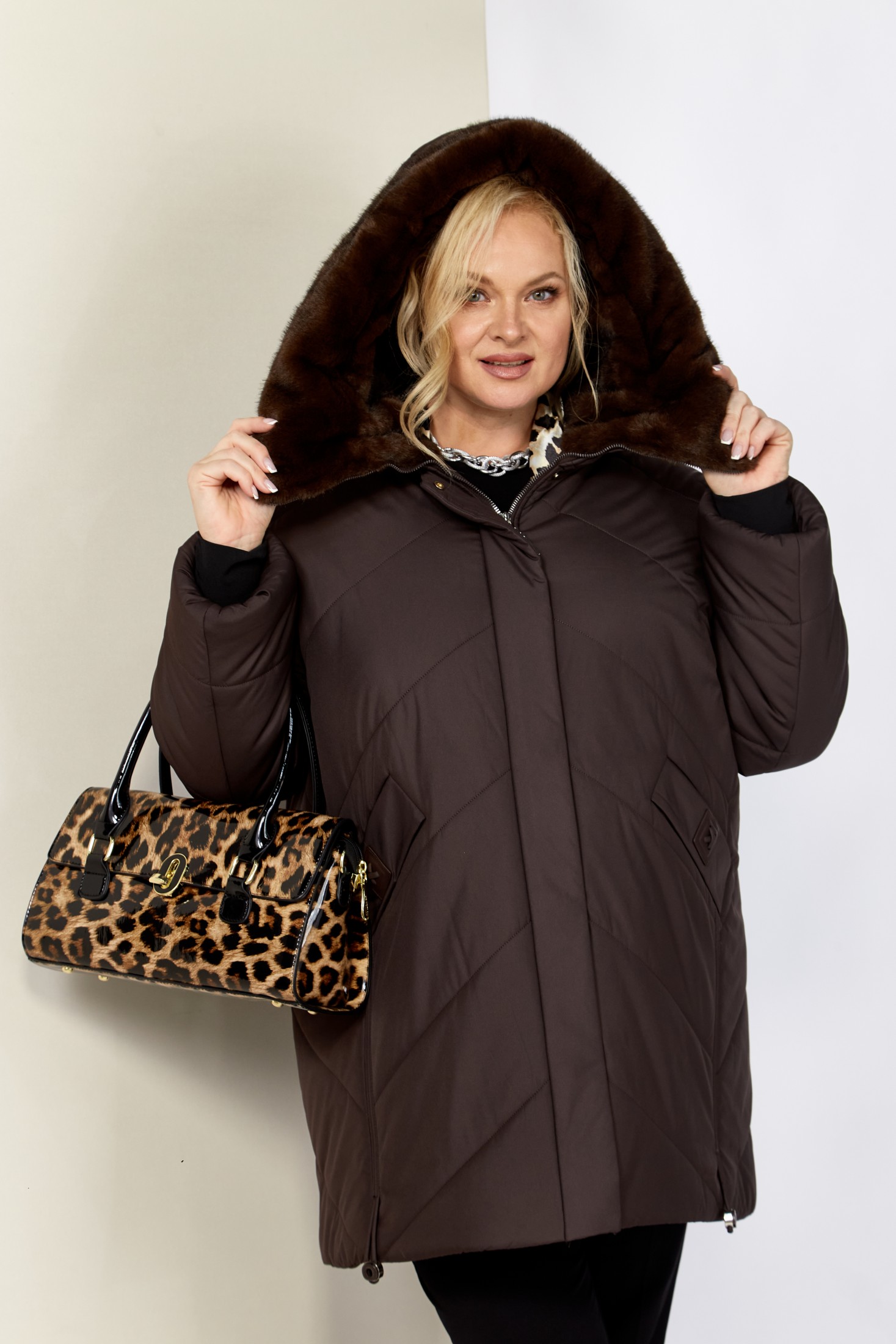 Зимняя, модная женская куртка, которая идеально подойдет для холодных дней, обеспечивая комфорт и защиту от ветра. Изделие прямого, классического стиля, выполнена из курточной матовой ткани высокого качества, непромокаемая. Утеплитель «Верблюжья шерсть» хорошо держит форму и не сбивается. По переду центральная застежка на молнии с планкой на металлические кнопки. Карманы прорезного типа на магнитах и декоративным элементом. Рукав втачной. Для защиты от ветра и мороза, рукава по низу дополнены внутренними трикотажными манжетами. Капюшон не съемный, регулируется декоративным шнуром. Внутренняя часть капюшона отделана мехом, максимально по внешнему виду приближенного к натуральному «Норка». Боковые швы оформлены декоративным шнуром. Спинка цельная. Низ изделия на регулируемой кулисе, что позволит сохранить тепло в холодное время года.