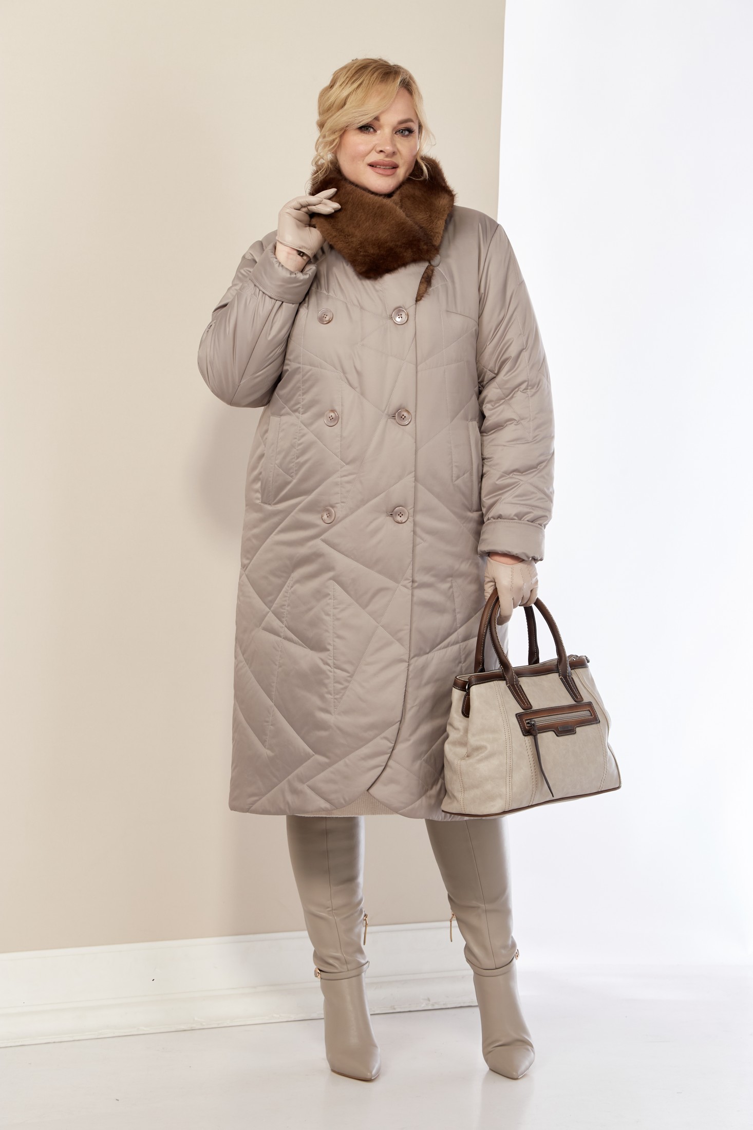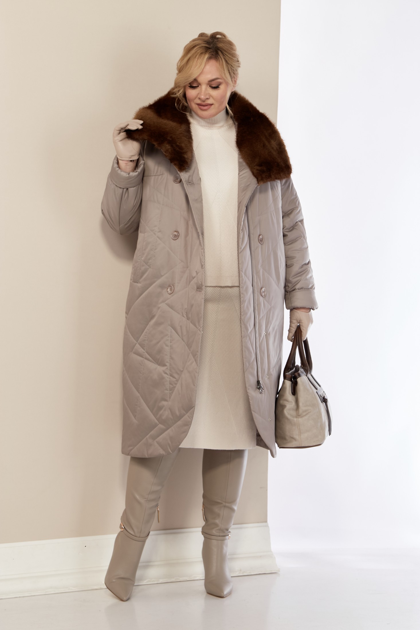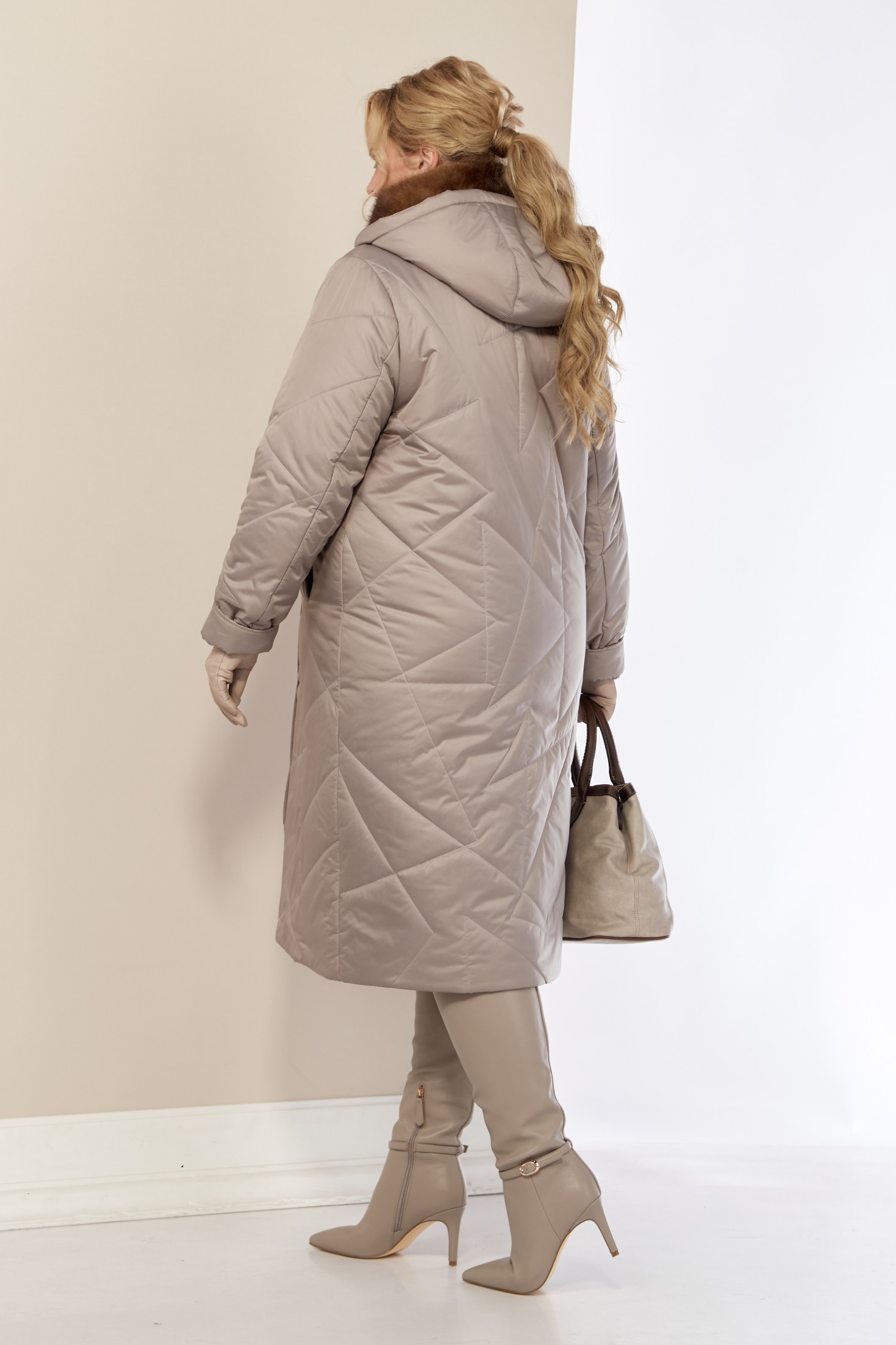 Стильное и модное женское пальто, которое идеально подходит для холодных дней, обеспечивая комфорт и защиту от ветра. Изделие прямого, классического стиля. Выполнено из стеганого мягкого материала, что делает пальто особо уютным и приятным на ощупь. Утеплитель «Верблюжья шерсть» хорошо держит форму и не сбивается. По переду центральная застежка на молнии и пуговицы, с имитацией двубортной застежки, а в нижней части на потайные металлические кнопки. Карманы прорезного типа на молнии. Воротник украшен эко-мехом «Норка» премиум качества (не съемный). Рукав втачной. Капюшон съемный.