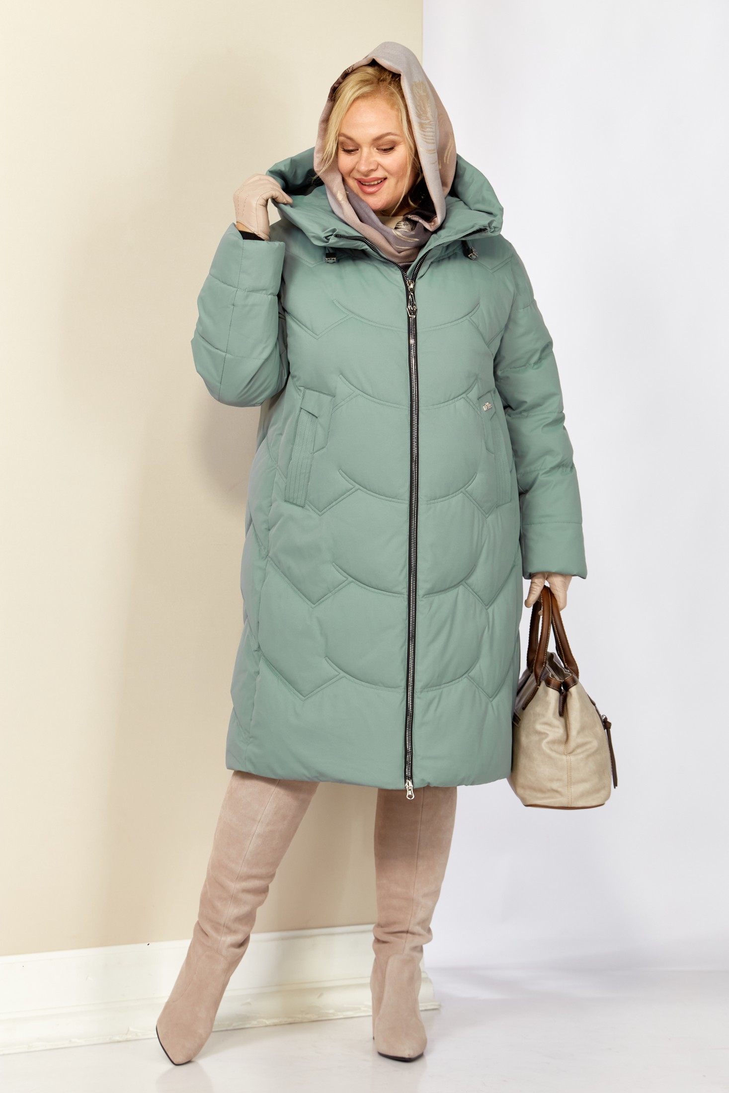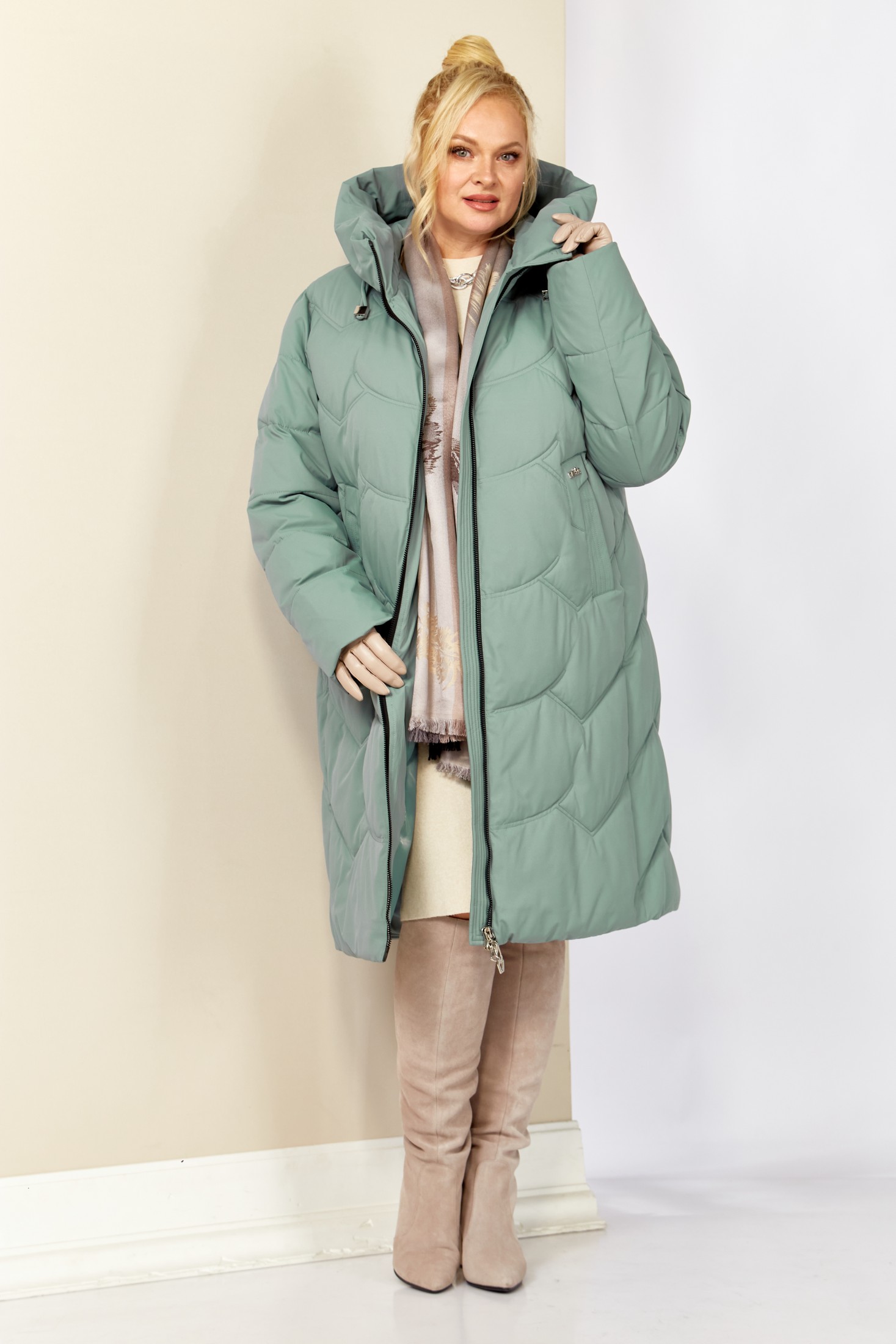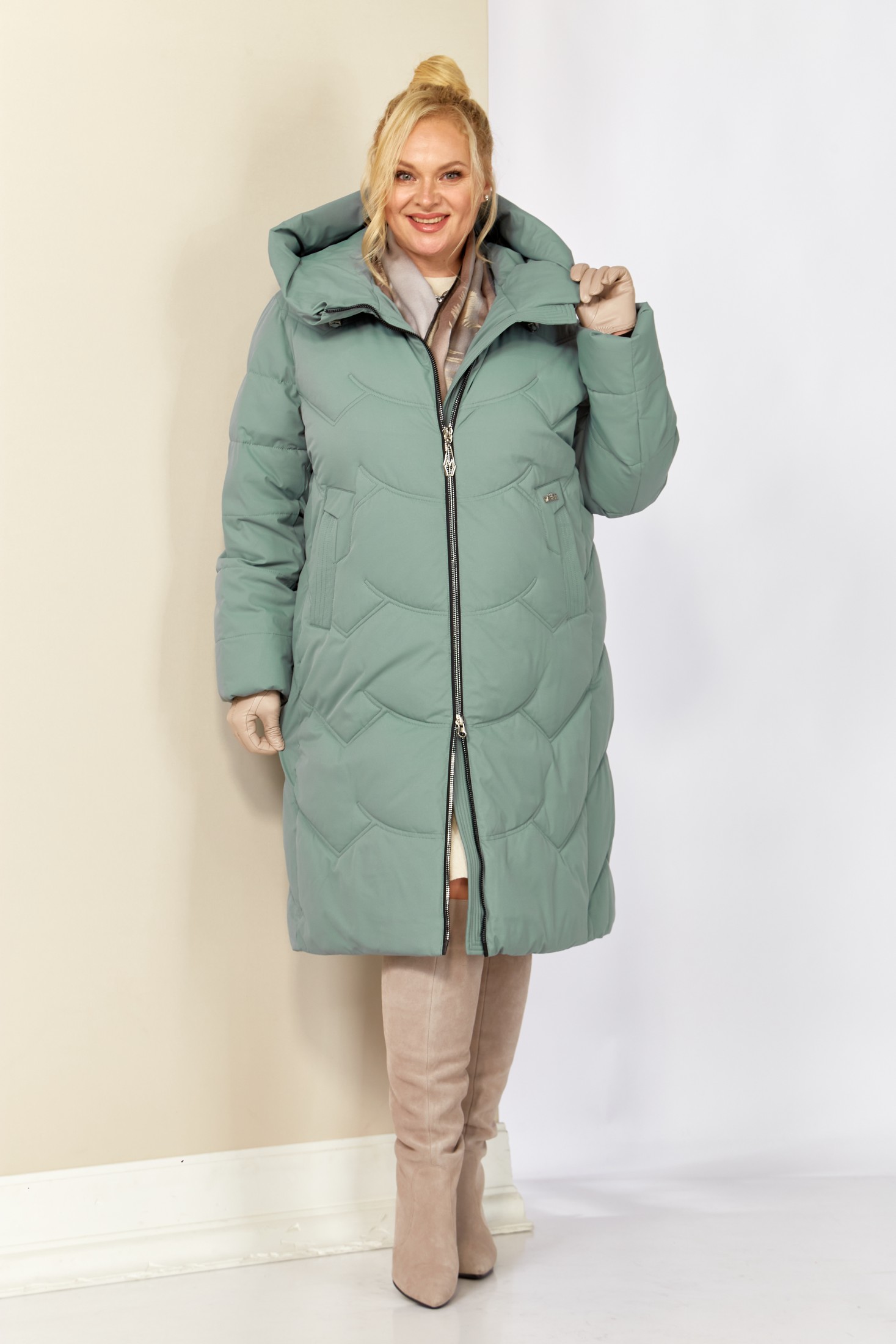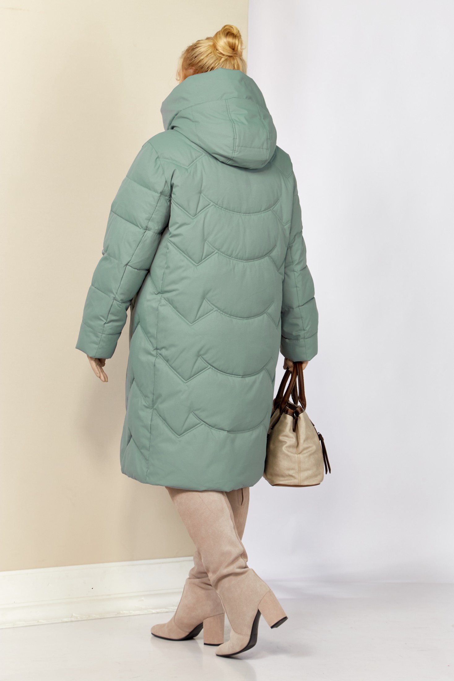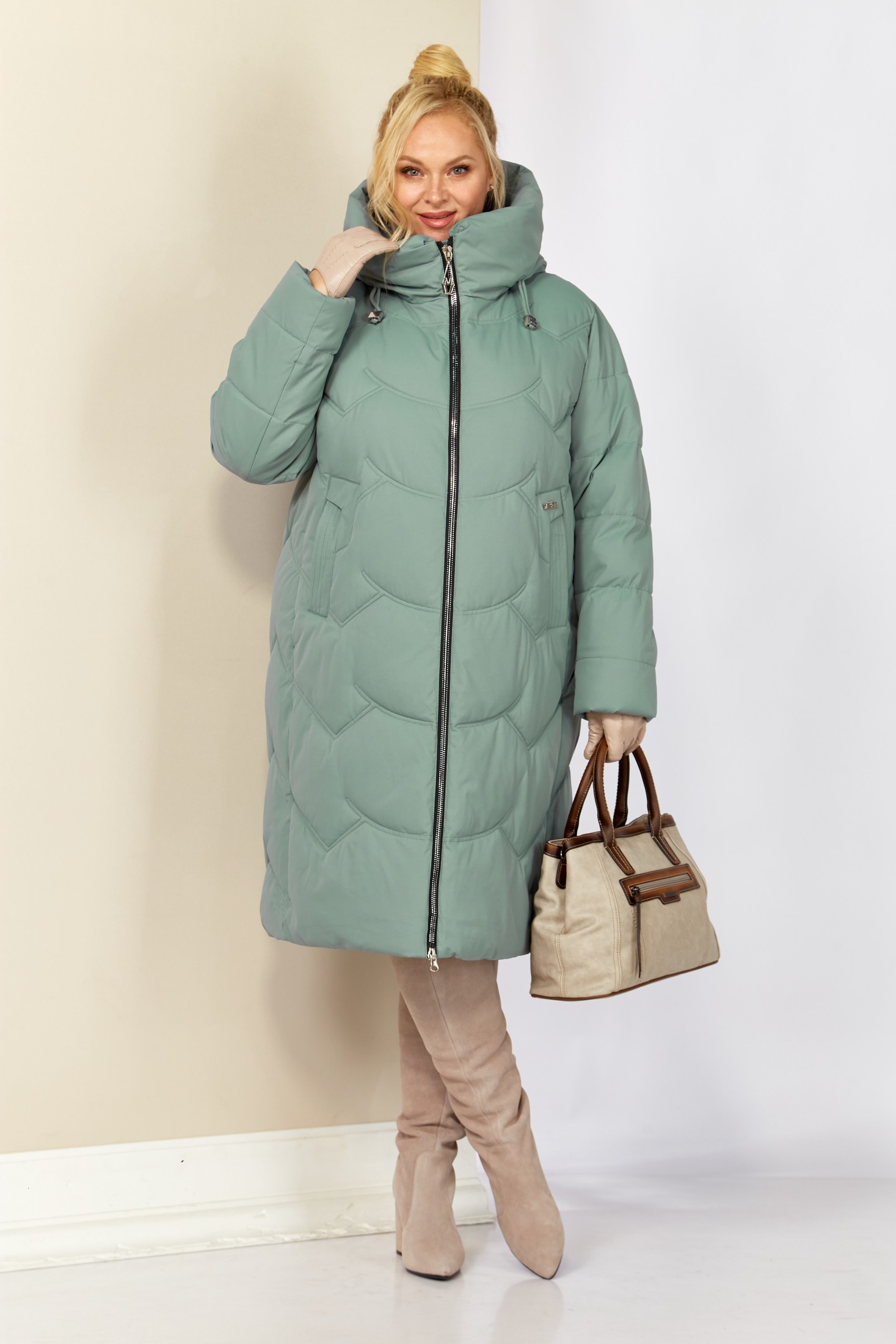 Уютное, зимнее пальто с воротником-стойкой переходящим в капюшон. Пальто удобное в носке, лёгкое и в тоже время очень теплое. Изделие выполнено из курточной матовой ткани высокого качества непромокаемое, на утеплителе «Био пух», который хорошо держит форму и не сбивается. На подкладке.